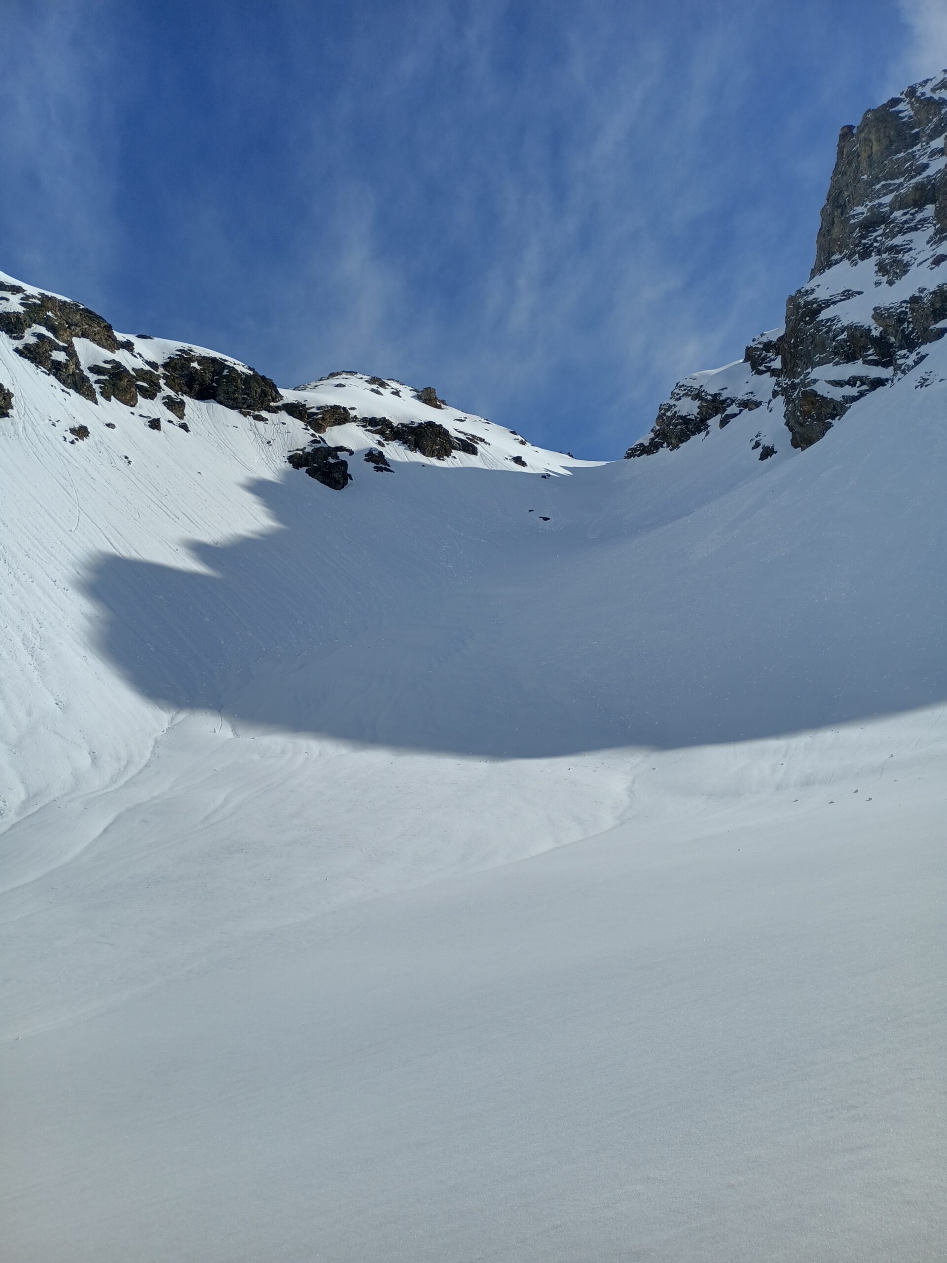 | bugsdistru | Canalino per il pianoro di Bonalex | bugsdistru | La nostra meta con il pendio valanghivo ben visibile | bugsdistru | Bei pendii anche alle nostre spalle | bugsdistru | Discesa a fianco del canale | bugsdistru | Canalino in basso | bugsdistru | Inizia il ravanage