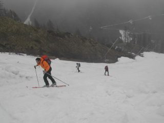Neve abbastanza difficoltosa in discesa piccoli tratti con crosta portante alternati a tratti non portanti fino al fondo del primo pendio. Nel falsopiano che è…