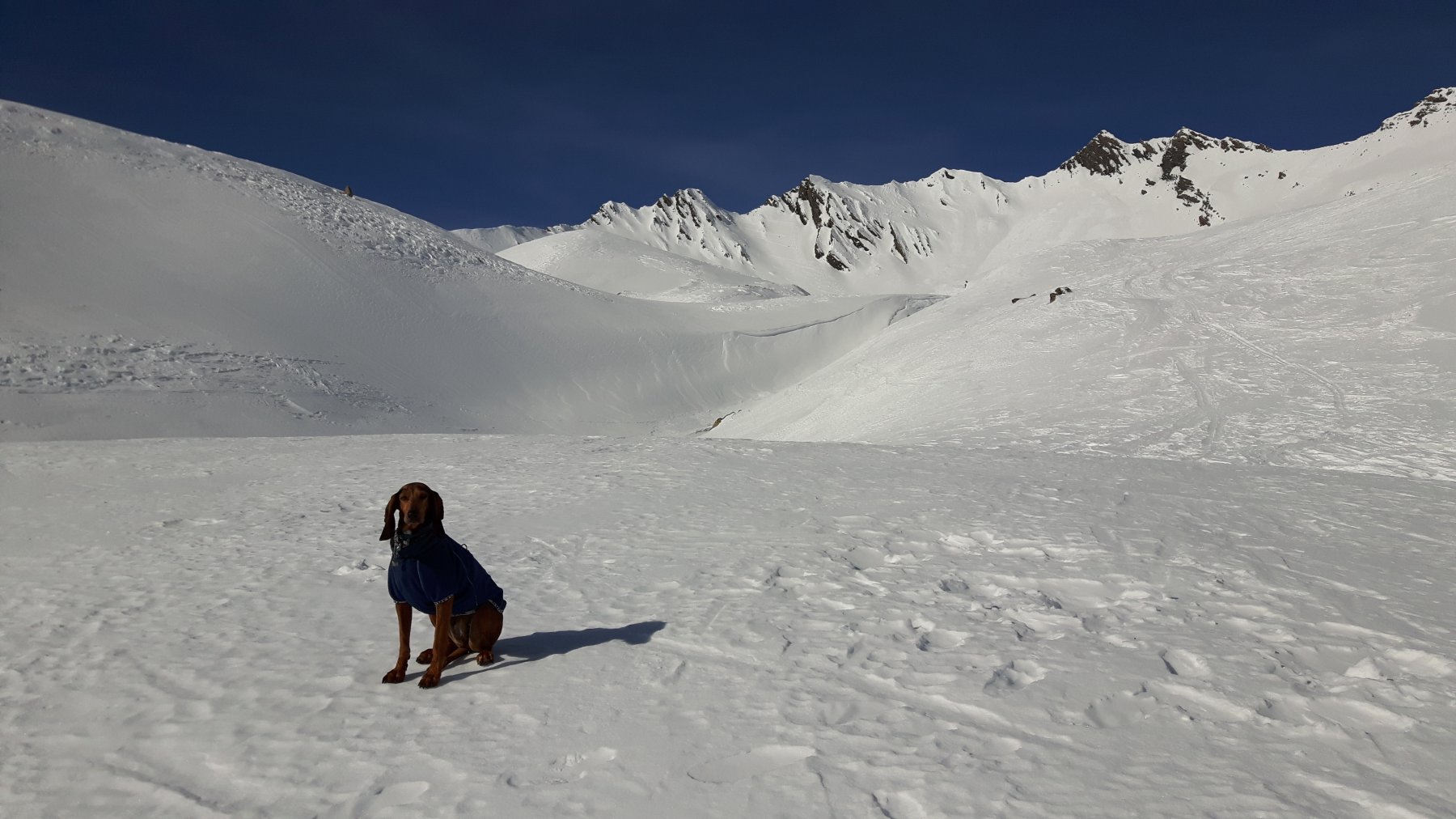 neve continua dall'auto ma ventata su tutta la gita. ci siamo fermati a 2750 metri per il forte vento.