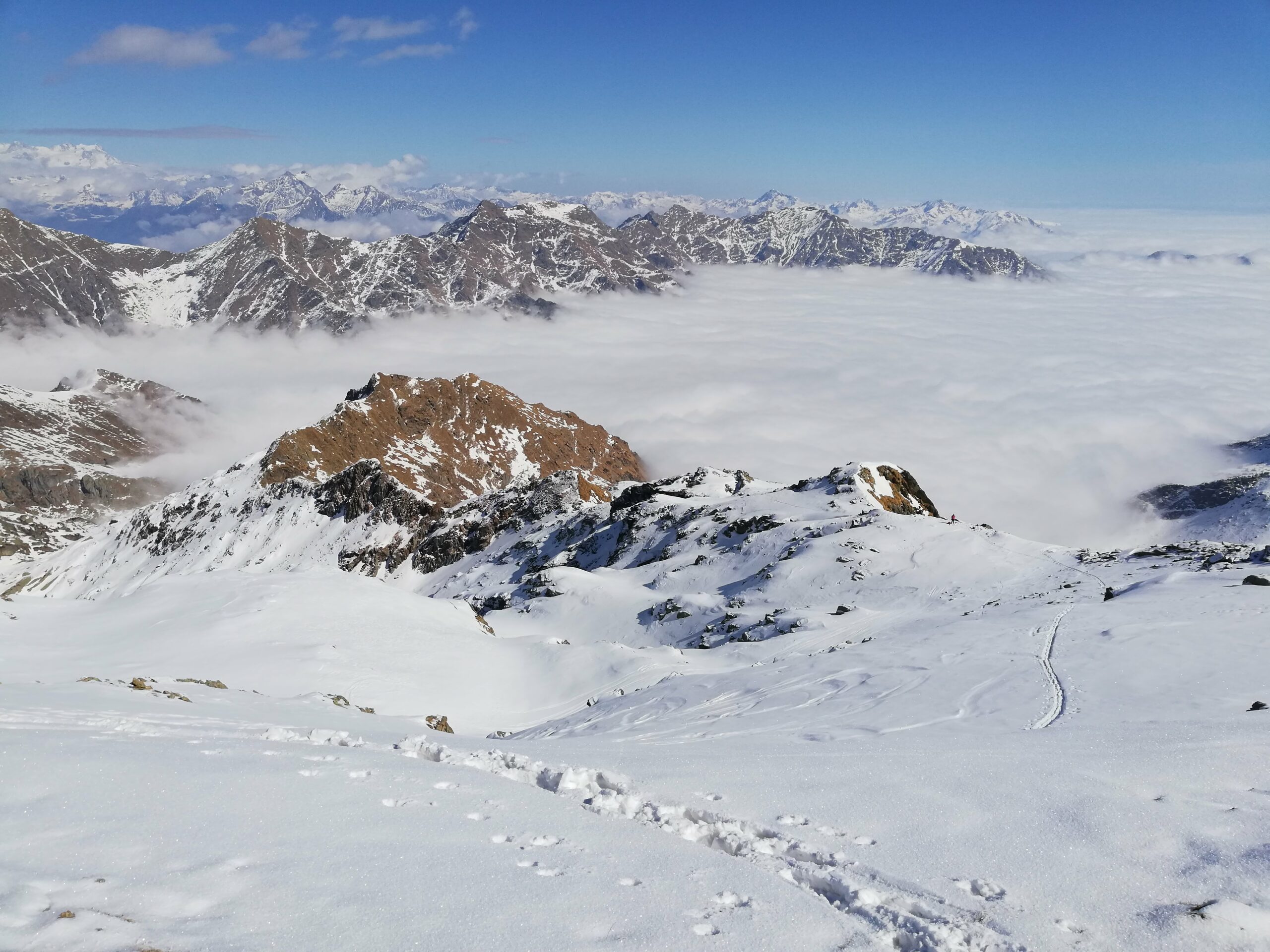 | capharnao | Verso l'uscita, sulla calotta sommitale | capharnao | Il firn luccicante della calotta sommitale | capharnao | Inizio della discesa sul versante italiano | capharnao | Primi 100 metri di discesa sul versante italiano | capharnao | Moquette sul versante italiano | capharnao | Vista complessiva sul versante italiano | capharnao | Ultimi metri verso il fondo valle ed il bivacco Molline | capharnao | Ultime curve della stagione? | capharnao | Punta | capharnao | Salita | capharnao | Discesa | capharnao | Itinerario di salita sotto cima del Bouc | capharnao | Itinerario di discesa da quota 2650. In posizione centrale, tra le nuvole, la Becca di Tei, sulla destra la bastionata del Forchaz Orientale | capharnao | Itinerario di discesa da quota 2650, con al centro il pianoro dello Chalet de l'Epèe | capharnao | Nel canale