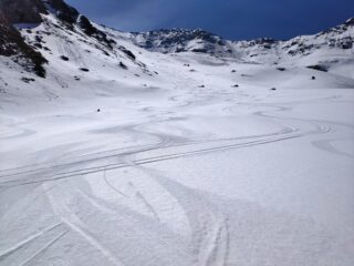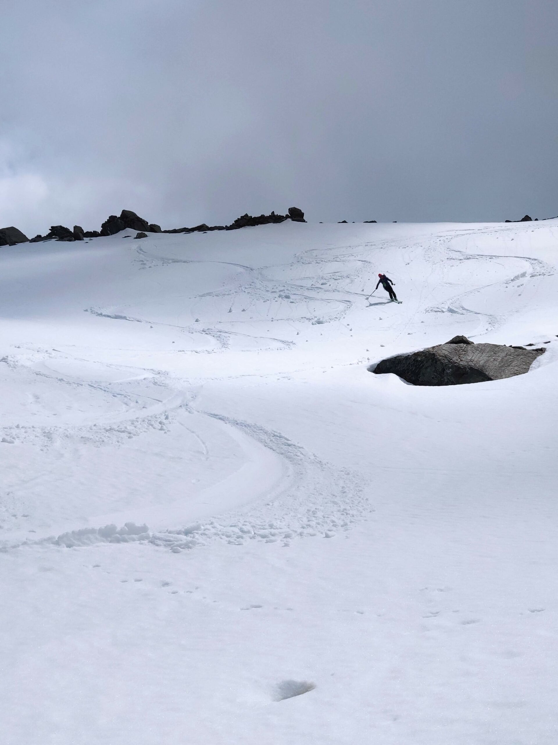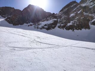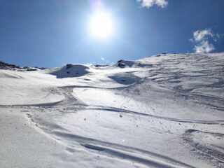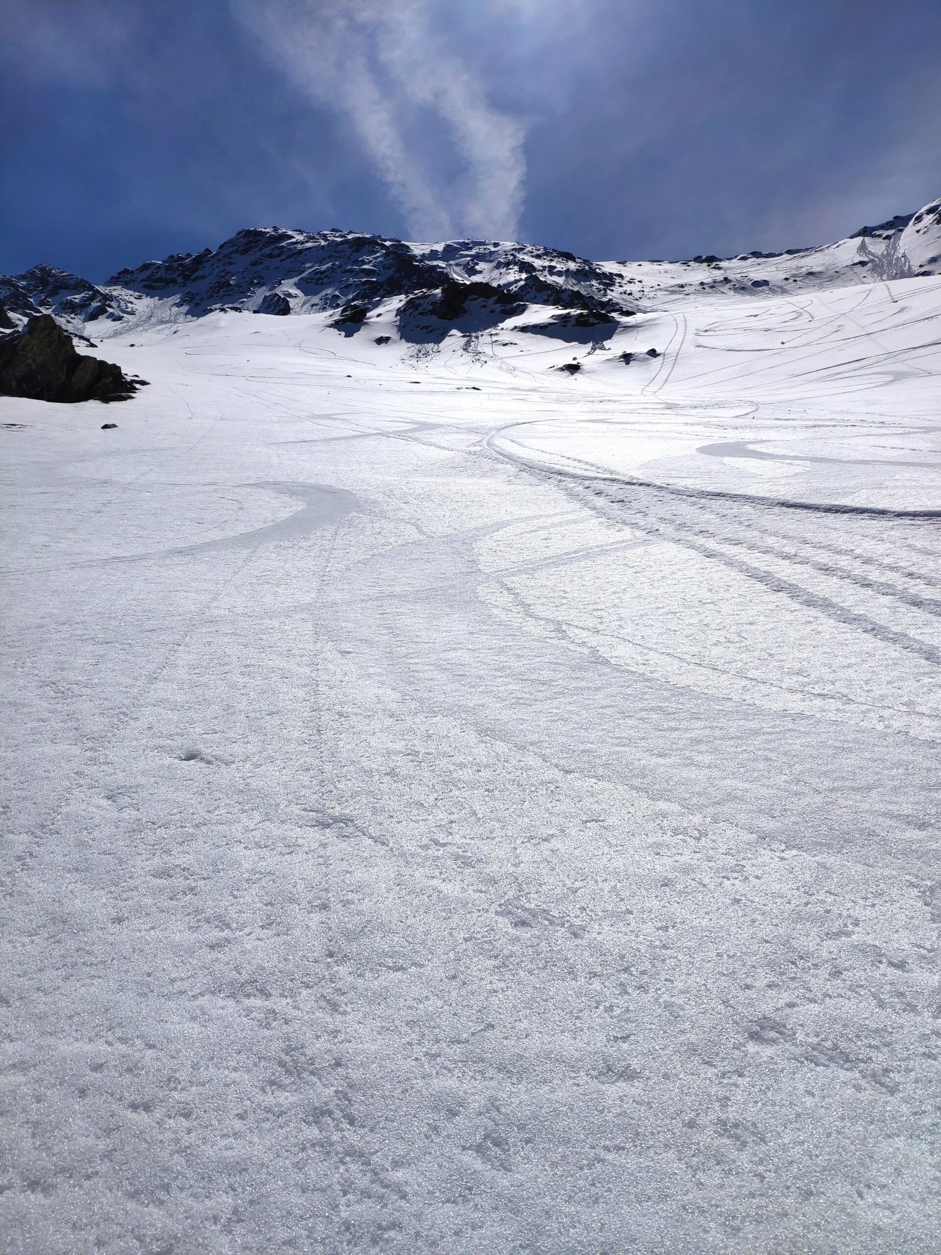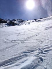 | capharnao | Verso l'uscita, sulla calotta sommitale | capharnao | Il firn luccicante della calotta sommitale | capharnao | Inizio della discesa sul versante italiano | capharnao | Primi 100 metri di discesa sul versante italiano | capharnao | Moquette sul versante italiano | capharnao | Vista complessiva sul versante italiano | capharnao | Ultimi metri verso il fondo valle ed il bivacco Molline | capharnao | Ultime curve della stagione?