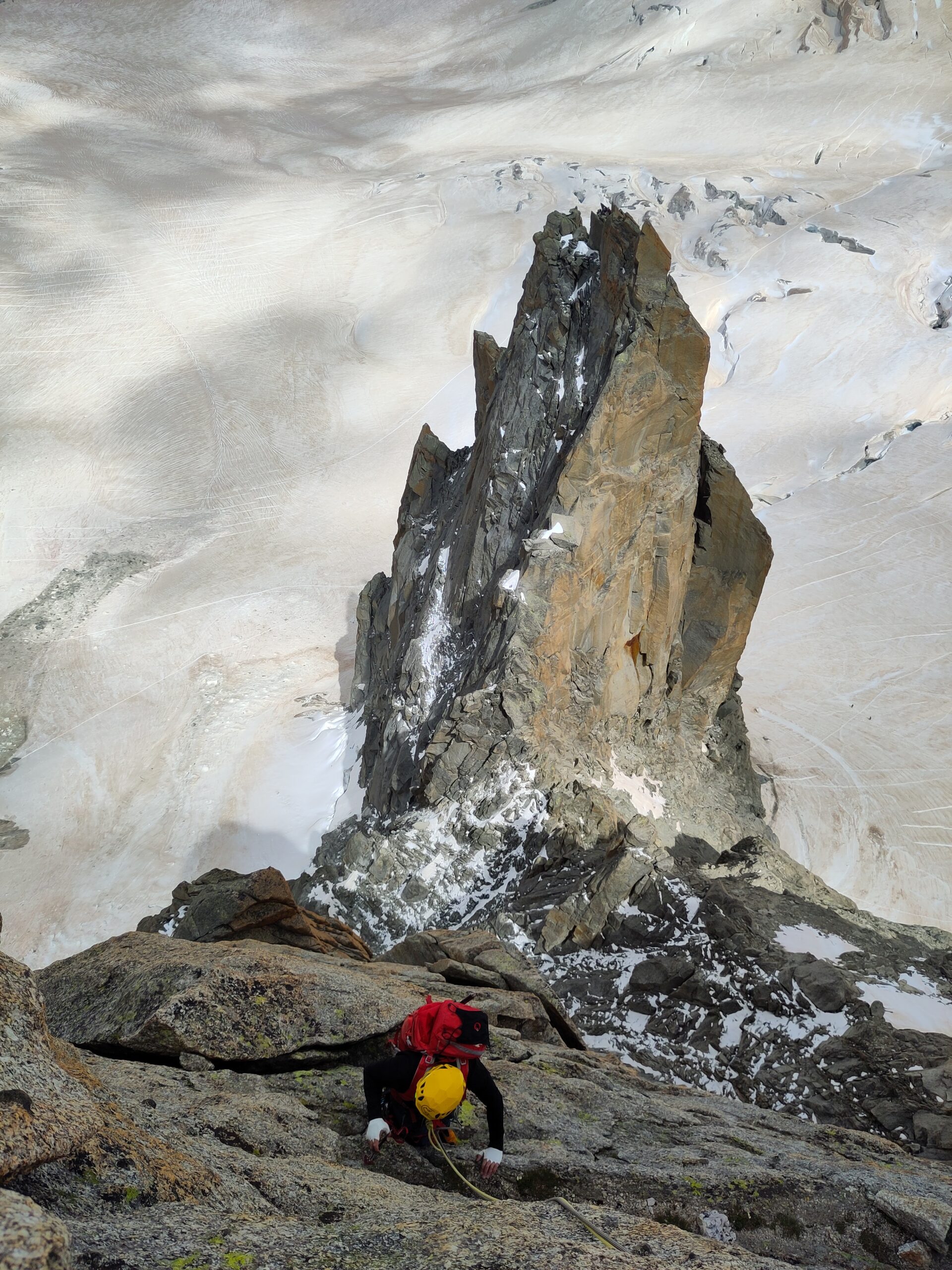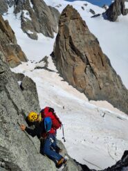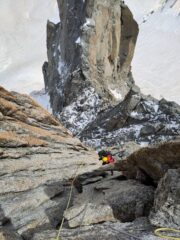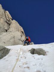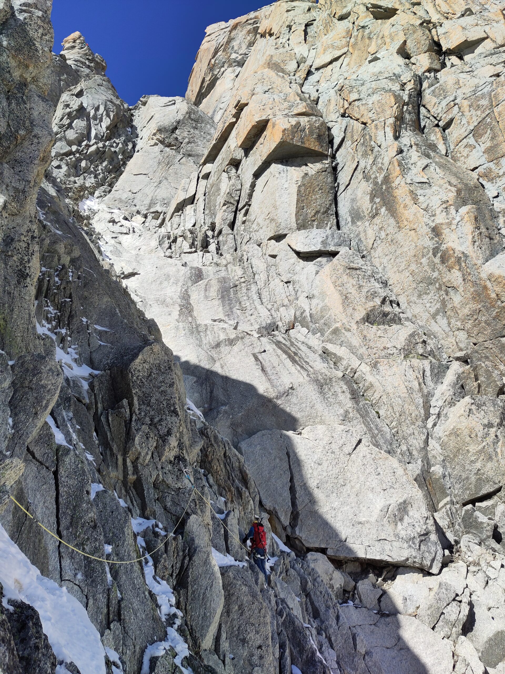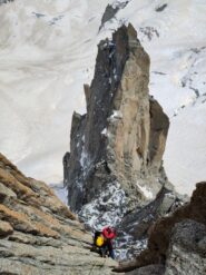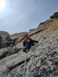 Bella via di stampo classico poco frequentata. Presenti soste attrezzate in tutti i tiri più difficili (quelli centrali). Protezione lungo i tiri assente tranne qualche vecchio…
