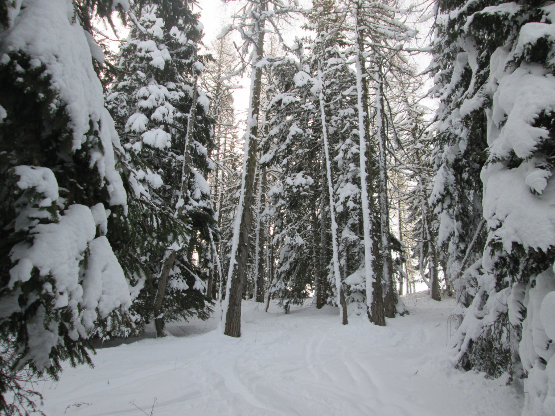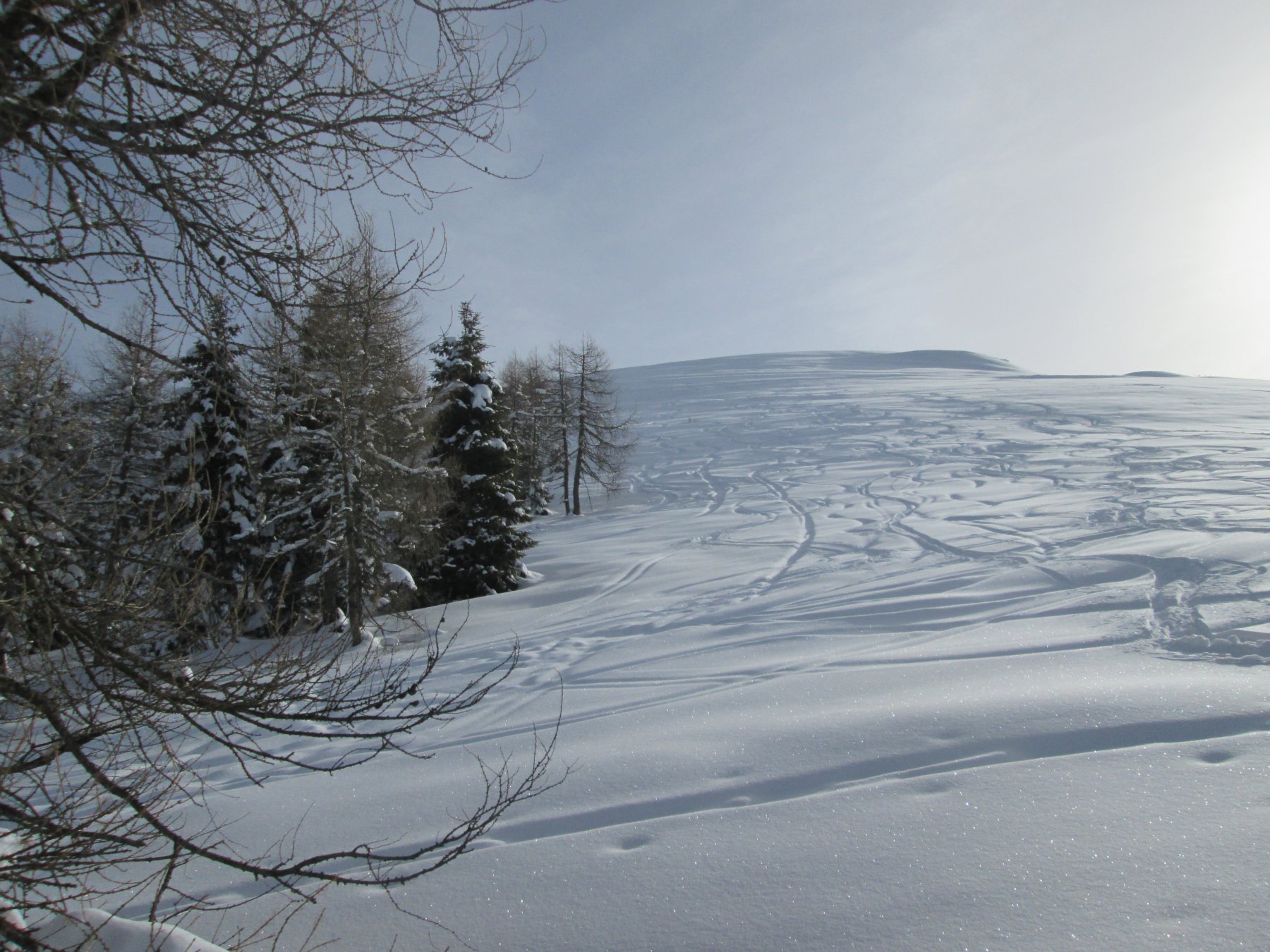Partito alle ore 8.00 in solitaria dalle Marande con cielo coperto e temperatura sui -2 gradi. Tracciato nel bosco e sulla dorsale su 20 cm…