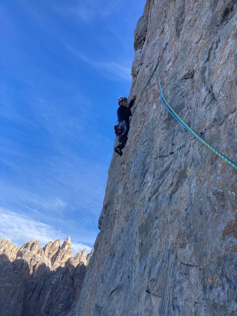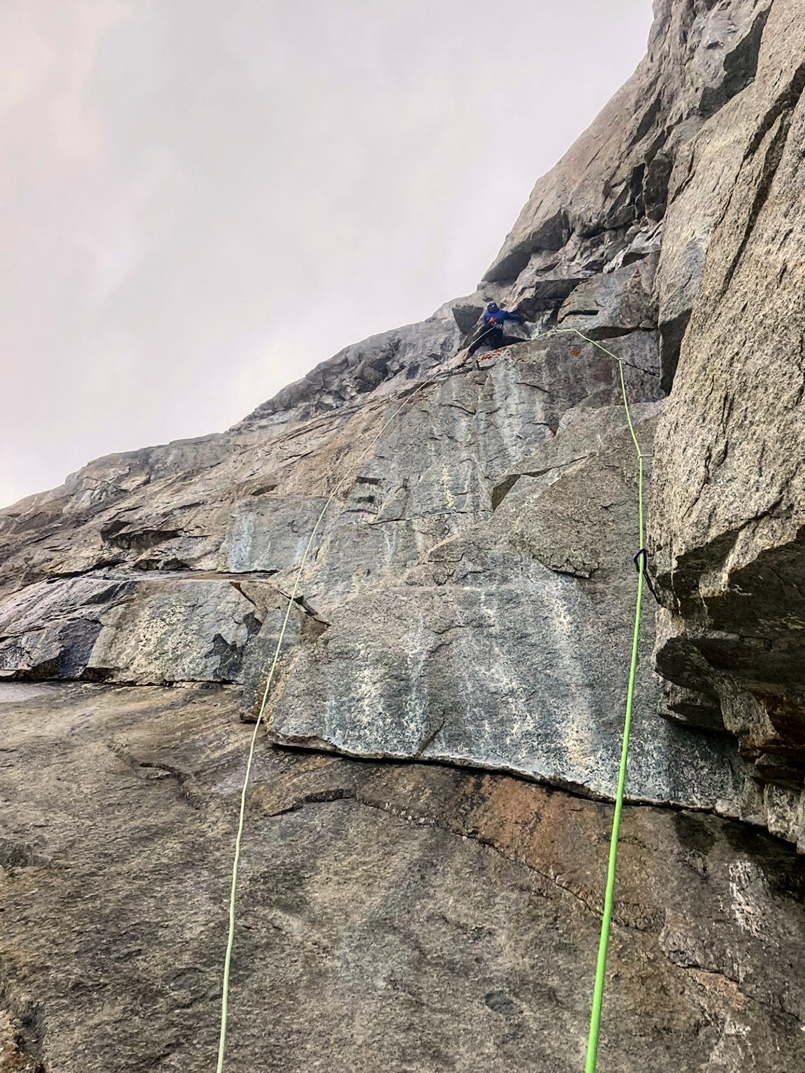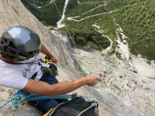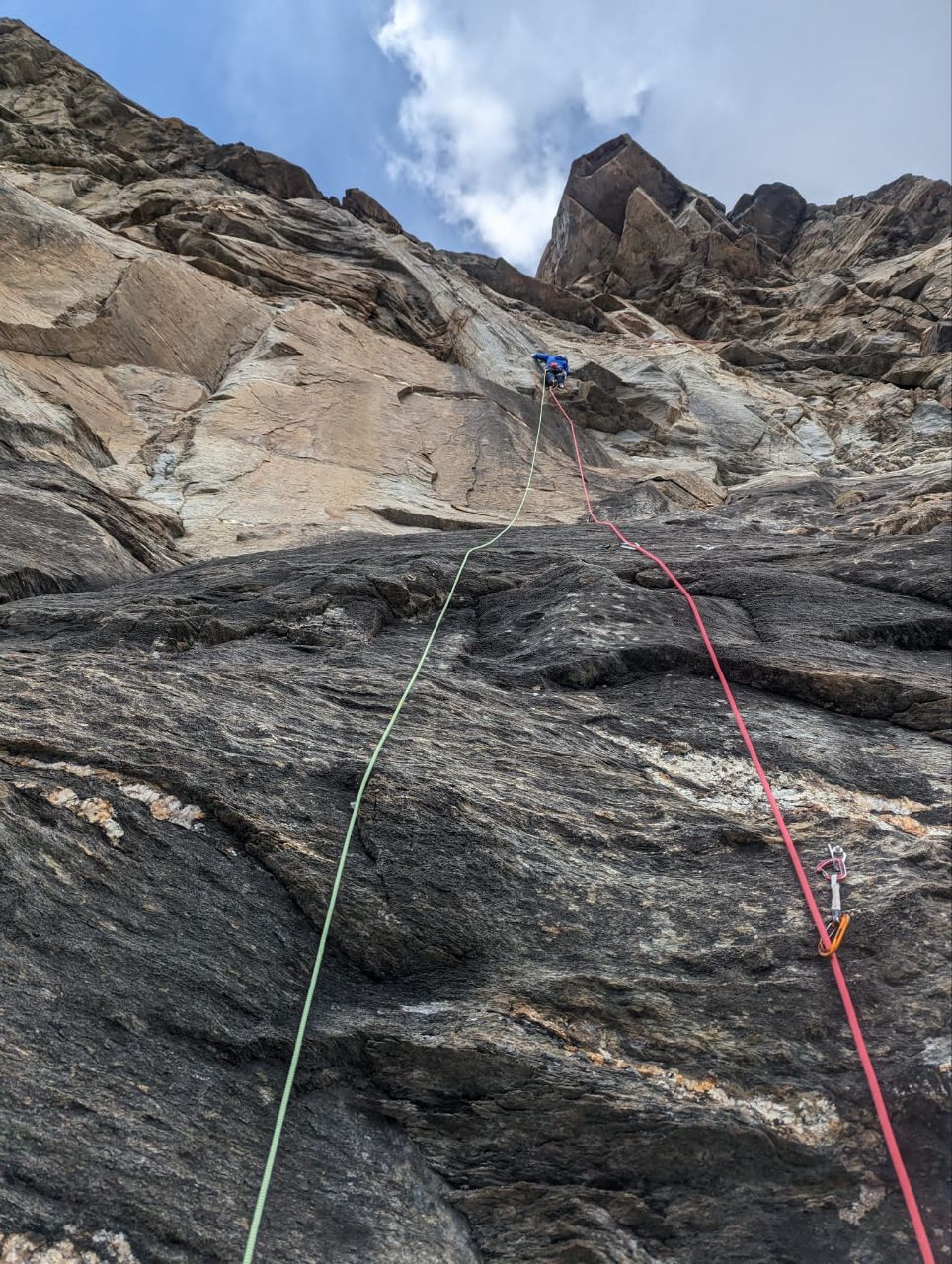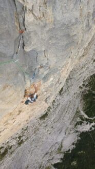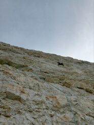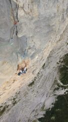 Avvicinamento in 1h circa con saccone molto pesante. La via è bellissima e di una verticalità impressionante. Molto chiodata e con obbligatorio basso che sul tiro…
