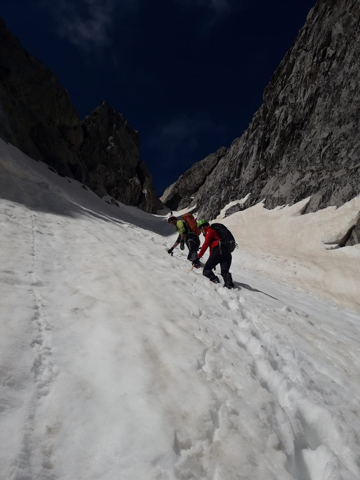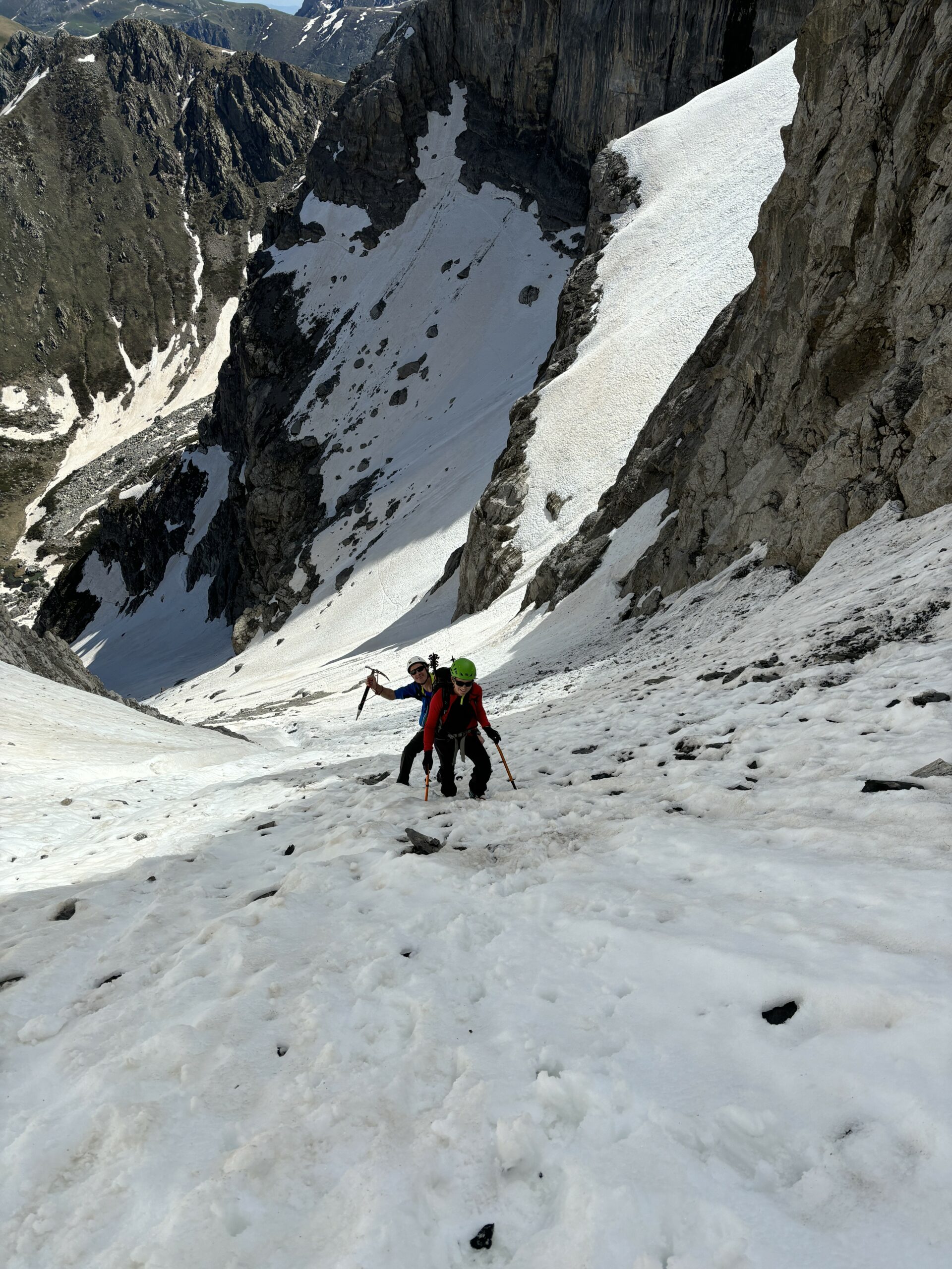 Be che bell’Alpinata! Partiti da Castello, in giornata, avvicinamento, senza neve, dal ex ghiacciaio Caprera, parte il Canale, condizioni neve sufficiente, poi doppia che ti…