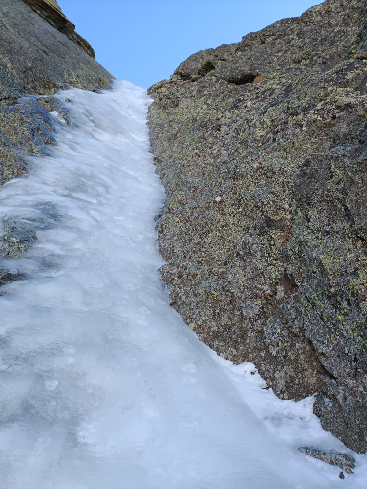 Goulotte molto bella in un ambiente favoloso linea fantastica, ghiaccio spaccoso, non facile, primi 2 tiri a parte un pezzo in partenza sono su…