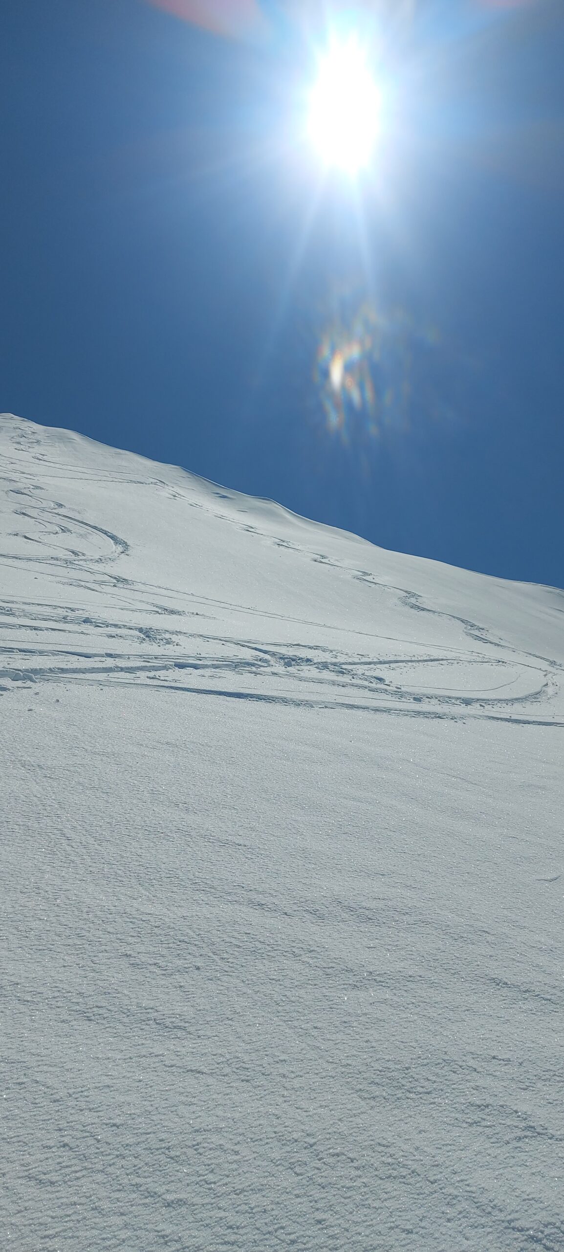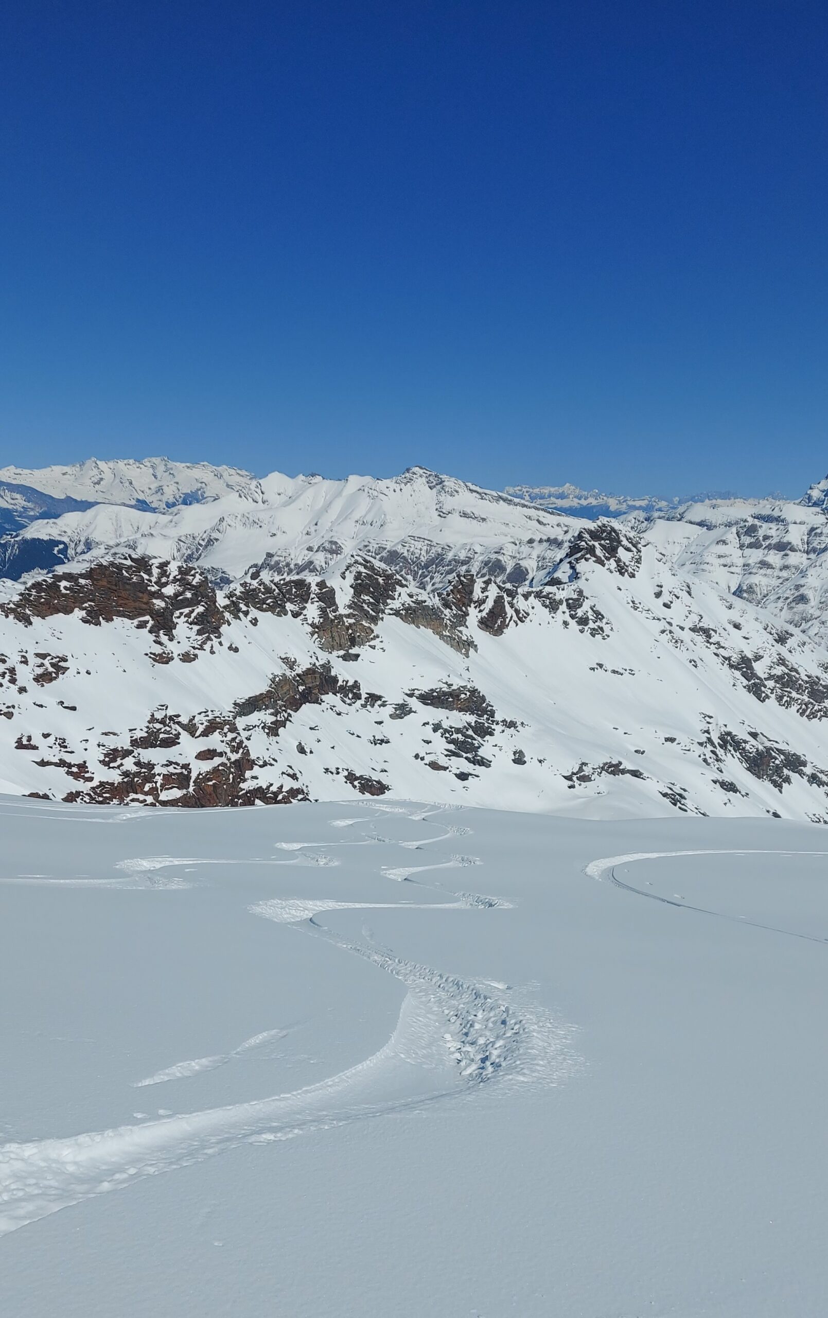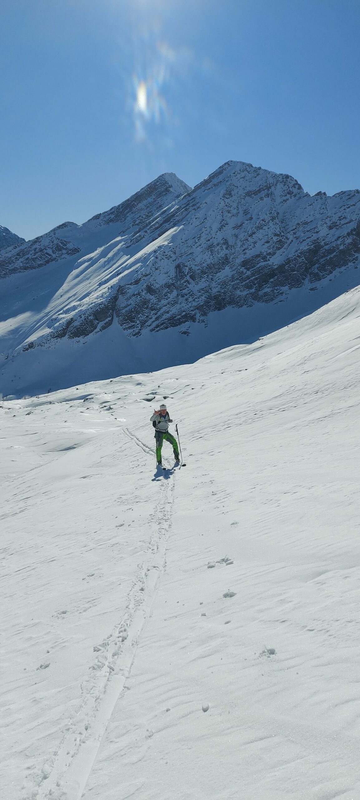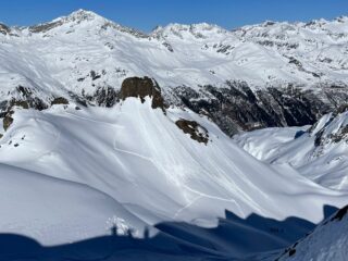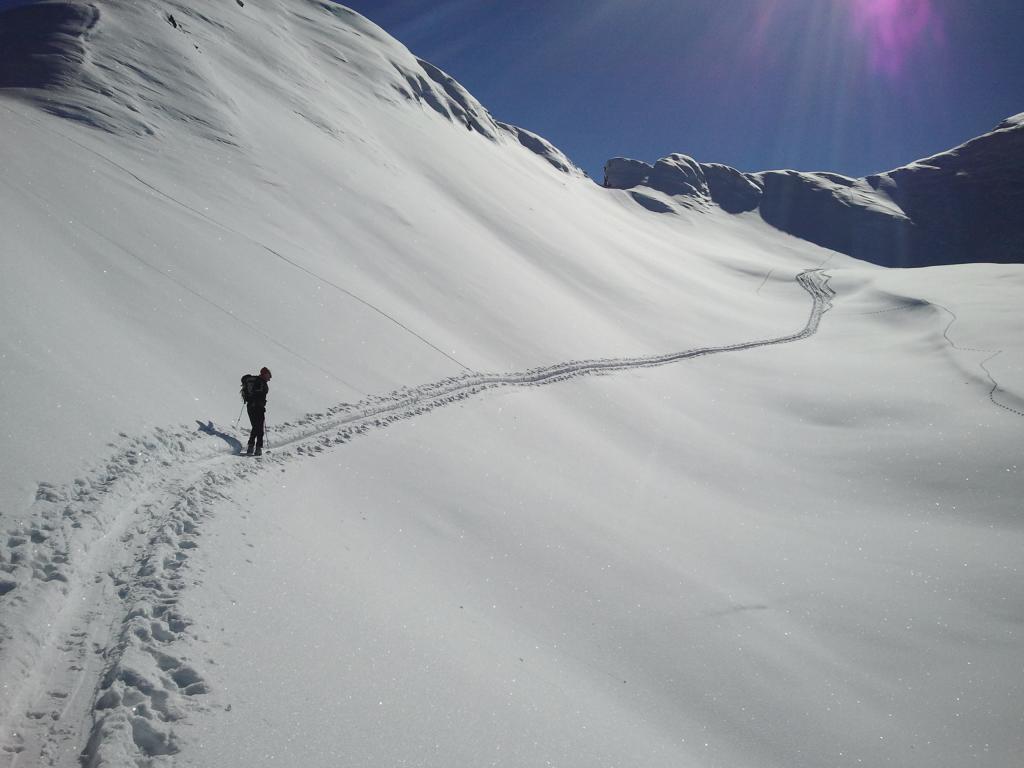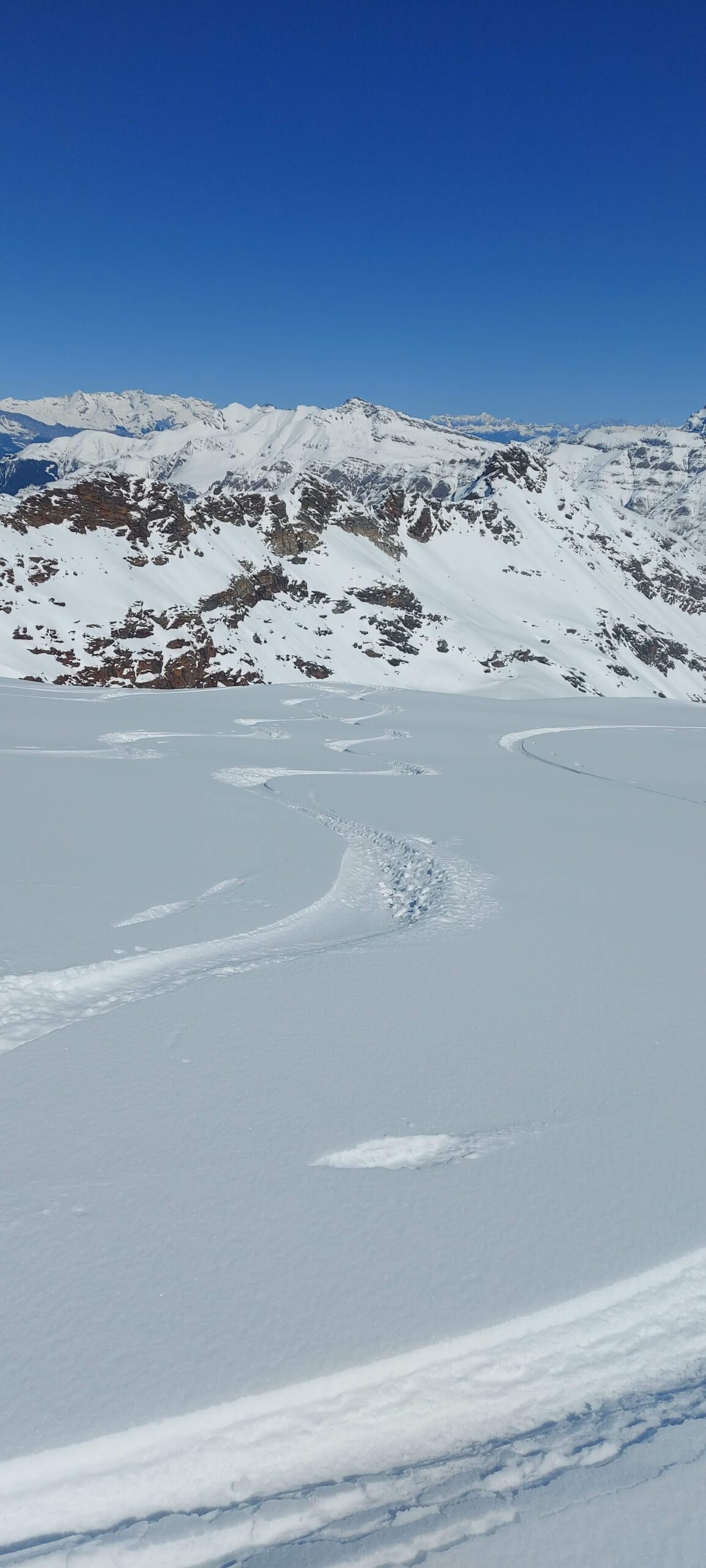 Partiti un po tardi da Hinterrehein(10) Saliamo prima il Chilchalphorn e poi la Wenglispitz. Discesa spettacolare fino ai 2400mt in polvere,poi crostaccia insciabile fino al penultimo…