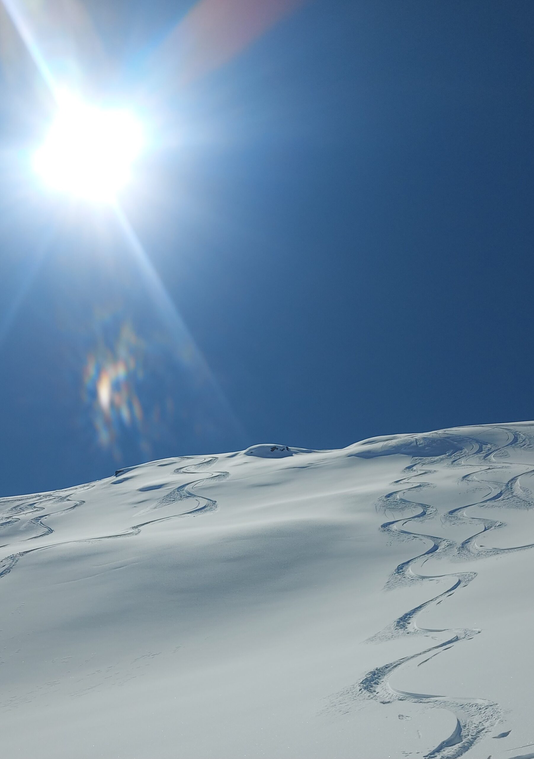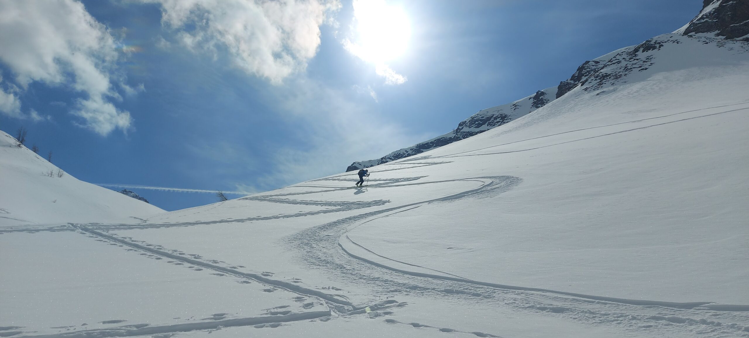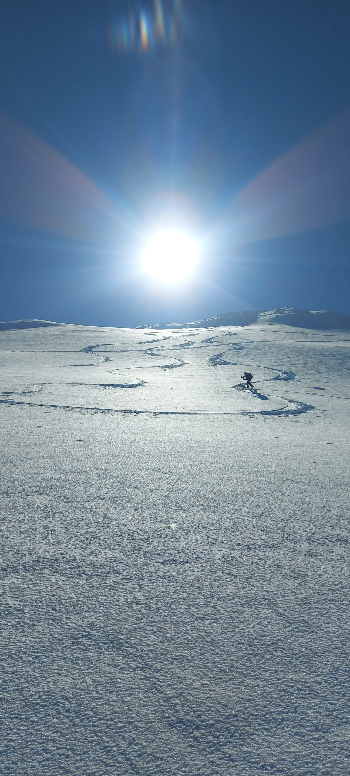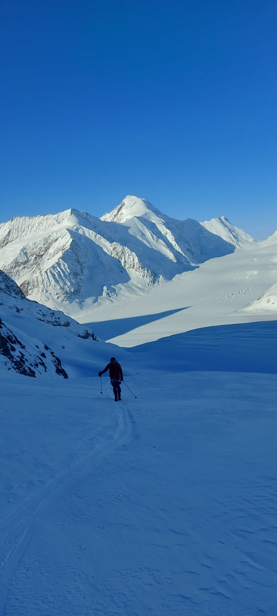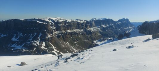 Partiti un po tardi da Hinterrehein(10) Saliamo prima il Chilchalphorn e poi la Wenglispitz. Discesa spettacolare fino ai 2400mt in polvere,poi crostaccia insciabile fino al penultimo…