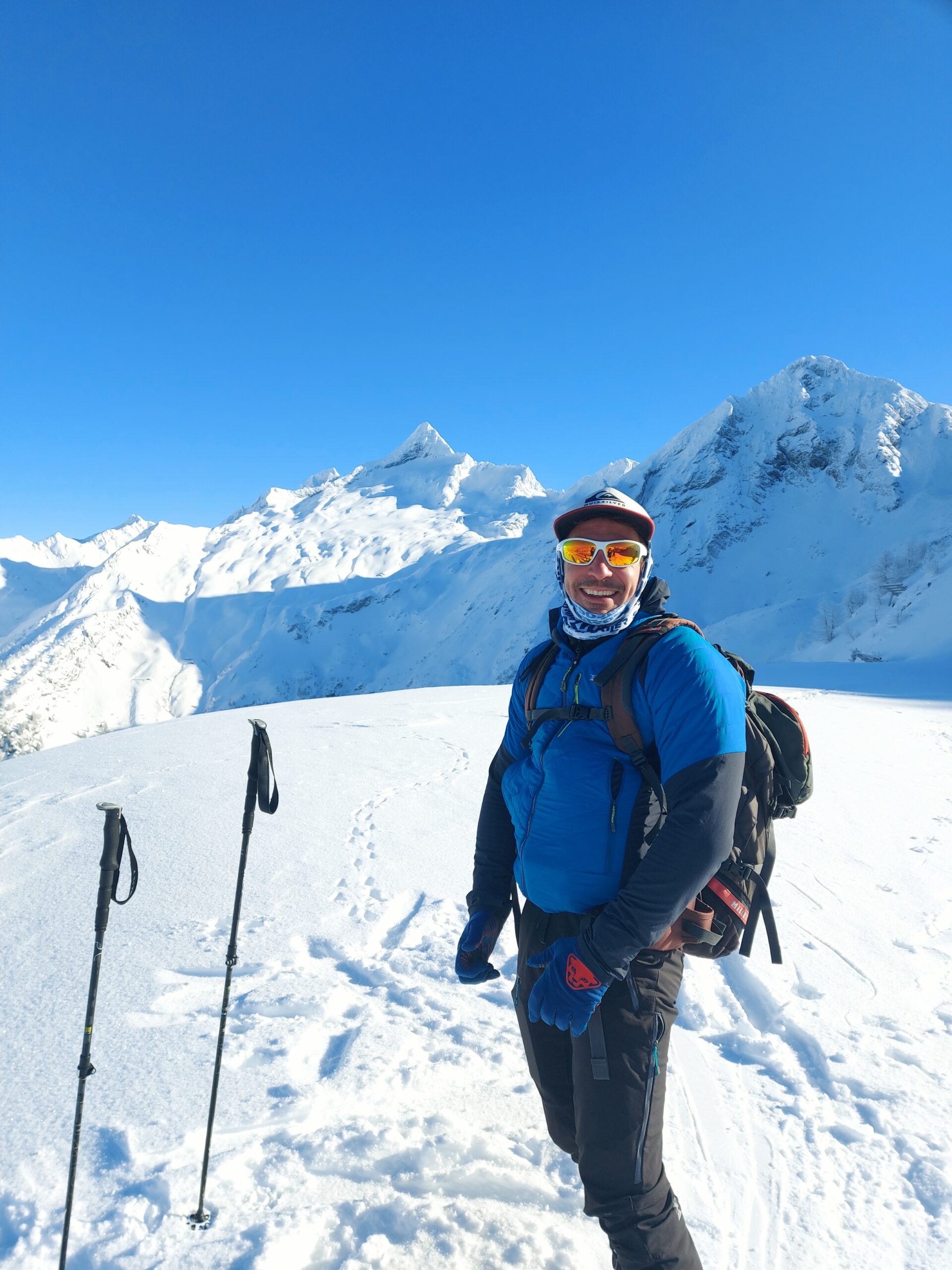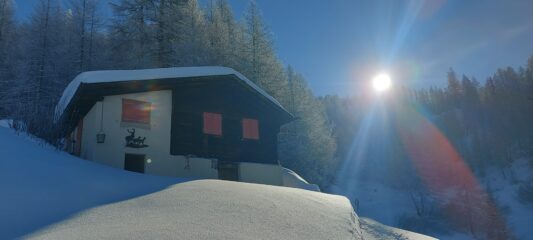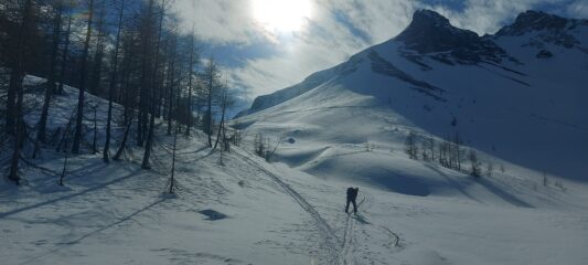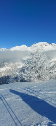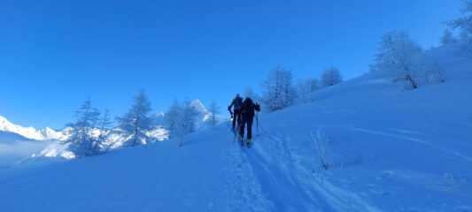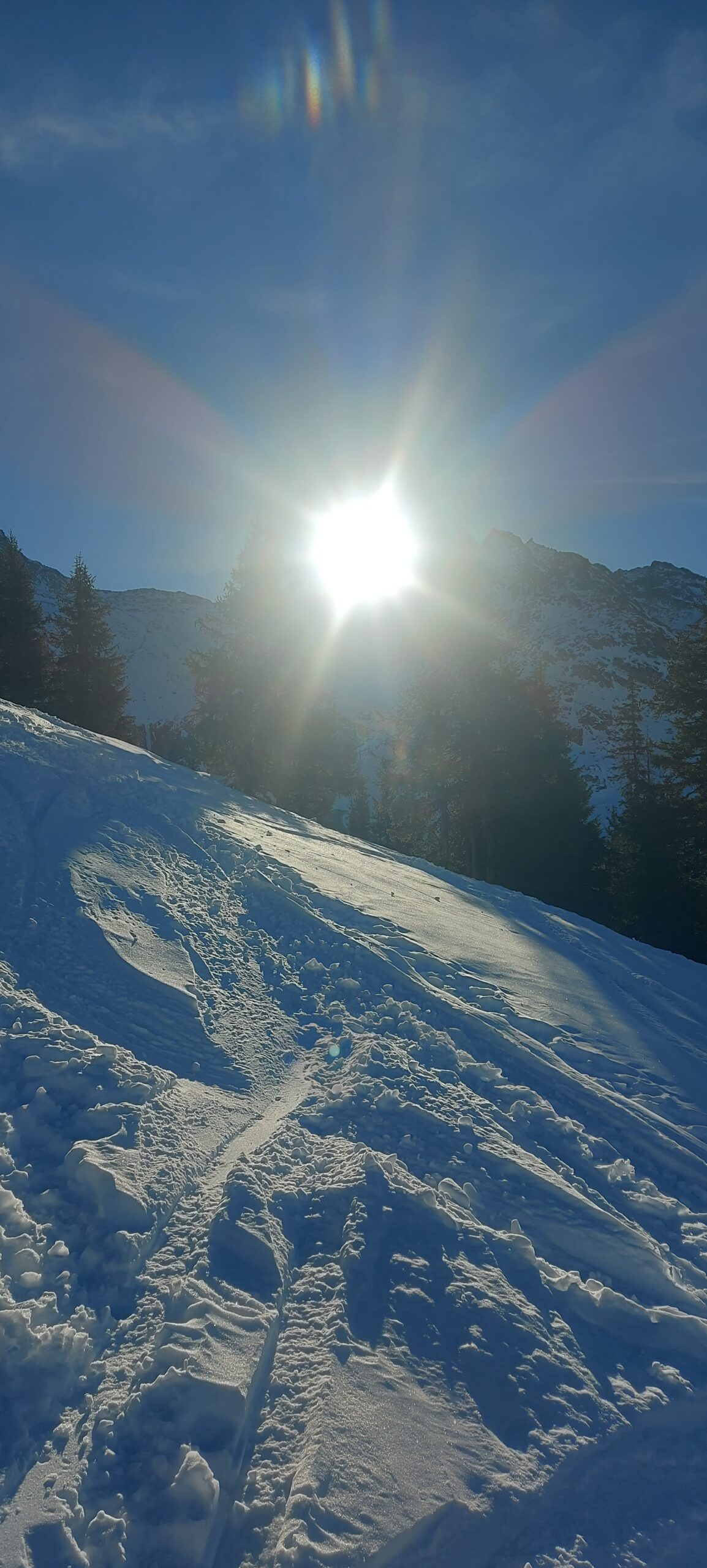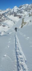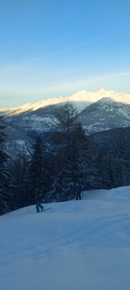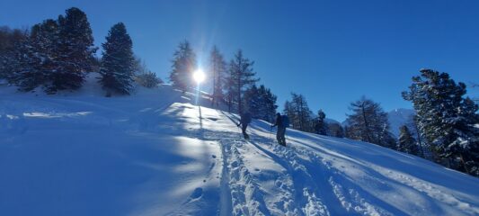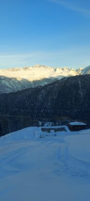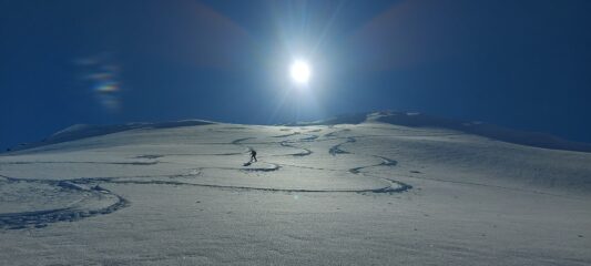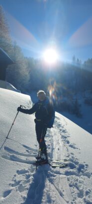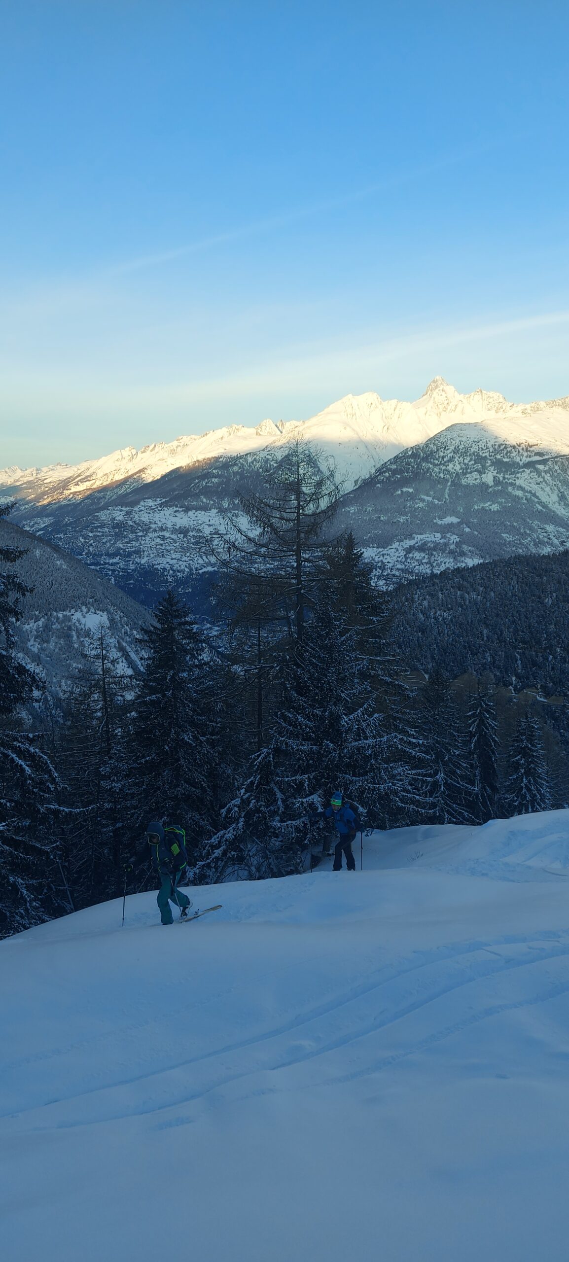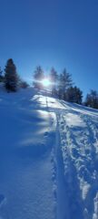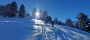 Un Diei tutto per noi. Giornata fantastica, sole,no vento e 10/15 cm di polvere su tutto il percorso. Saliti dalla pista chiusa di rientro…