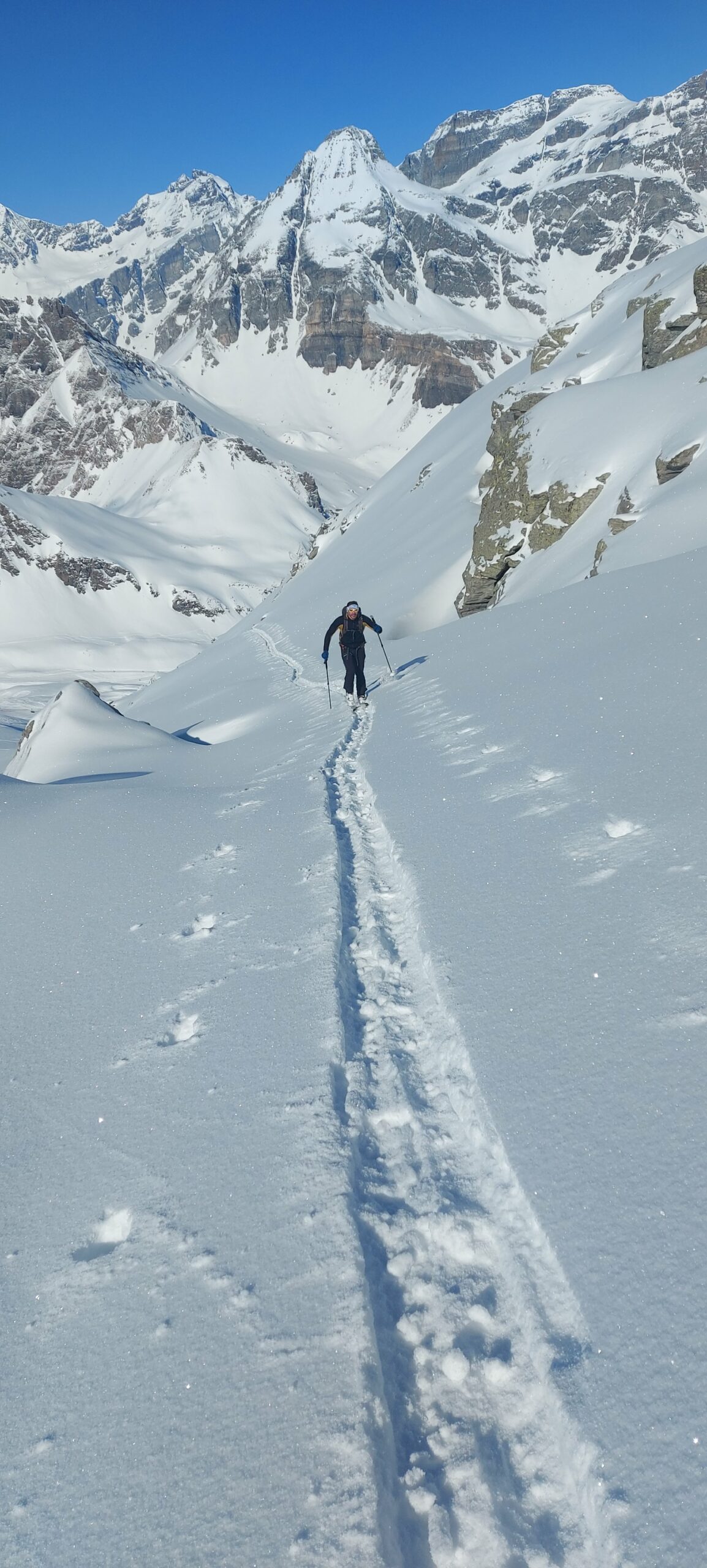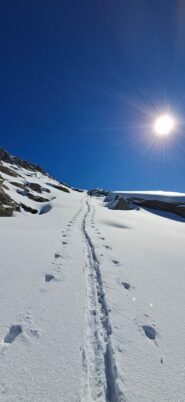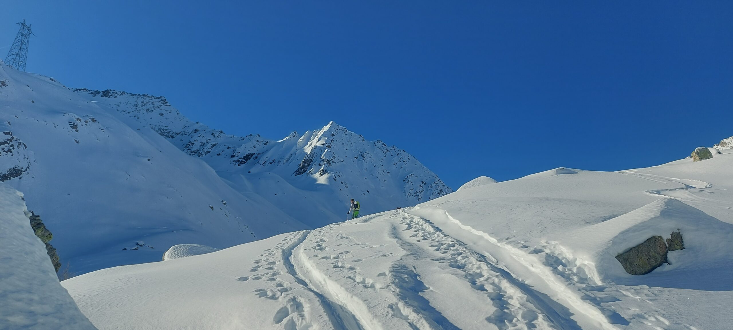 -5 alle 7 30 a Meien Partiamo e seguiamo la traccia già presente fino dove il vento non l'ha cancellata. Da lì in avanti…