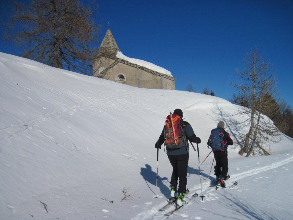 | celsomer | dal M. Mussiglione in discesa verso il rif. Manolino | celsomer | in salita al rif. Manolino | celsomer | chiesetta poco distante dal rifugio | celsomer | vallone verso il passo della Valletta | celsomer | canale prima del passo | celsomer | lasciati gli sci, si sale a piedi | celsomer | prossimi alla vetta | celsomer | foto di gruppo in vetta