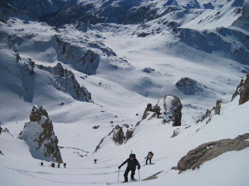| celsomer | verso l'Oronaye | celsomer | curve dei giorni precedenti | celsomer | imbocco del canale di sx | celsomer | infinite voltate | celsomer | qualcuno ha deciso di lasciare gli sci | celsomer | lasciati gli sci si prosegue coi ramponi | celsomer | il gruppo ci segue | celsomer | quota 3000 | celsomer | in discesa con neve non facile | celsomer | neve sciabile nella parte bassa del conoide