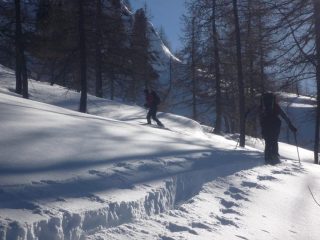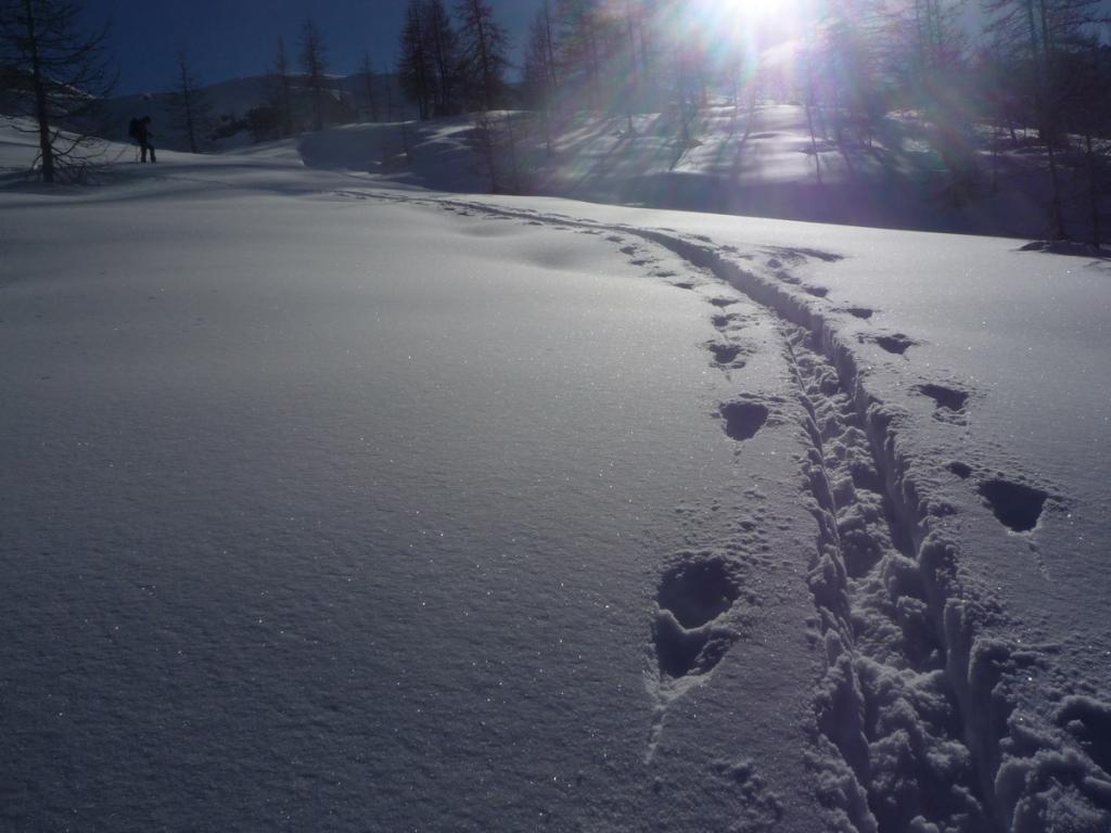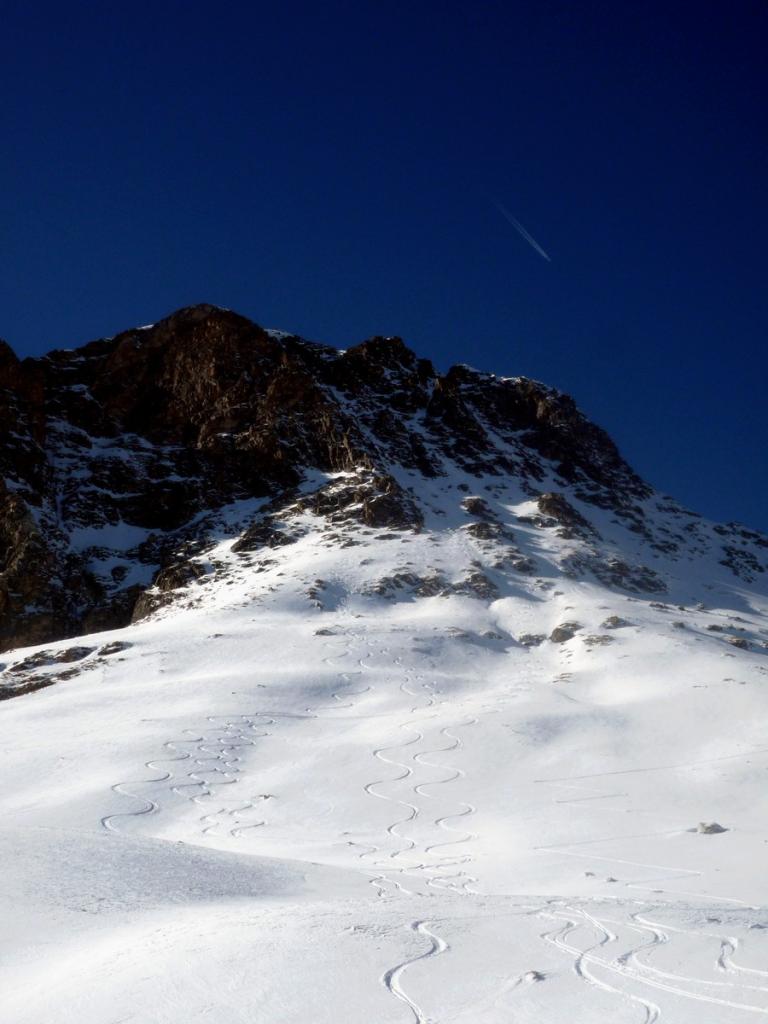| chia82 | Verso la Cengia. l'innevamento pare sufficiente, andiamo a vedere... | chia82 | ecco che la cengia si scopre... | chia82 | una perla nascosta... | chia82 | il percorso si snoda tra rocce, colletti, sellette... | chia82 | contrasti | chia82 | inevitabile fermarsi ad ammirare... | chia82 | Sbucano Monica ed Alberto, piccoli viaggiatori nella grande Val Maira | chia82 | prima selletta, lo sguardo si perde su nuovi orizzonti | chia82 | Rosso la salita, Verde: variante di discesa | chia82 | saliamo verso l'Arpet, neve sfondosa e instabile, pietre affioranti | chia82 | ora su cresta raggiungiamo la cima | chia82 | Meditazione per Alberto | chia82 | Prime curve per Giorgio | chia82 | neve grippante | chia82 | un po come volare | chia82 | nel canale | chia82 | le nostre tracce | chia82 | parte seconda: dopo la sella panoramica | chia82 | neve fantastica | chia82 | ...e questo è stile! | chia82 | Monica grintosa! | chia82 | Gianluca pennella | chia82 | Alberto e Koba tra rocce e cascate | chia82 | Alessio nel conoide | chia82 | sotto la cengia nascosta | chia82 | lassù le nostre tracce. Solo la montagna è perfetta, noi solo ospiti imperfetti ed erranti. | chia82 | "la scala a chiocciola" : l'itinerario