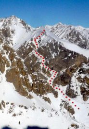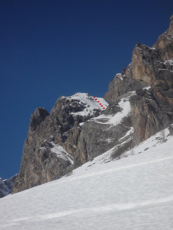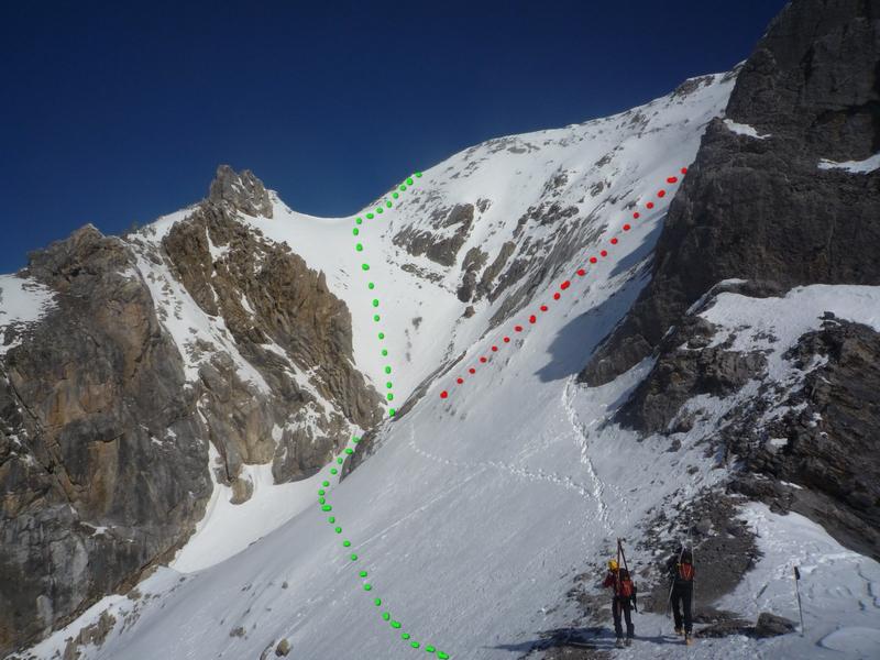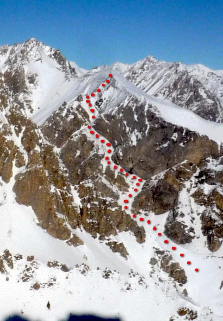 | chia82 | rosso: canale NE classico, giallo: Canale NE di DX, verde: canali Est | chia82 | | chia82 | | chia82 | i Canali Est | chia82 | l'attacco del canale | chia82 | | chia82 | in basso Ferriere è ormai un puntino | chia82 |