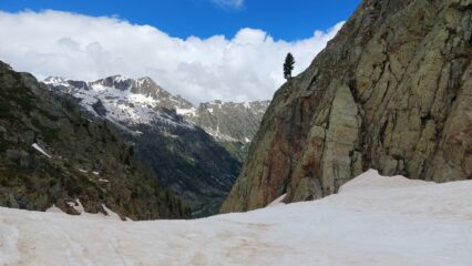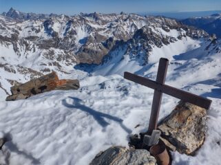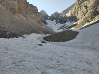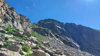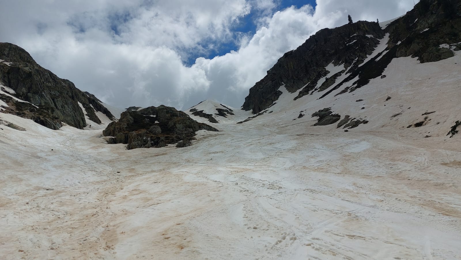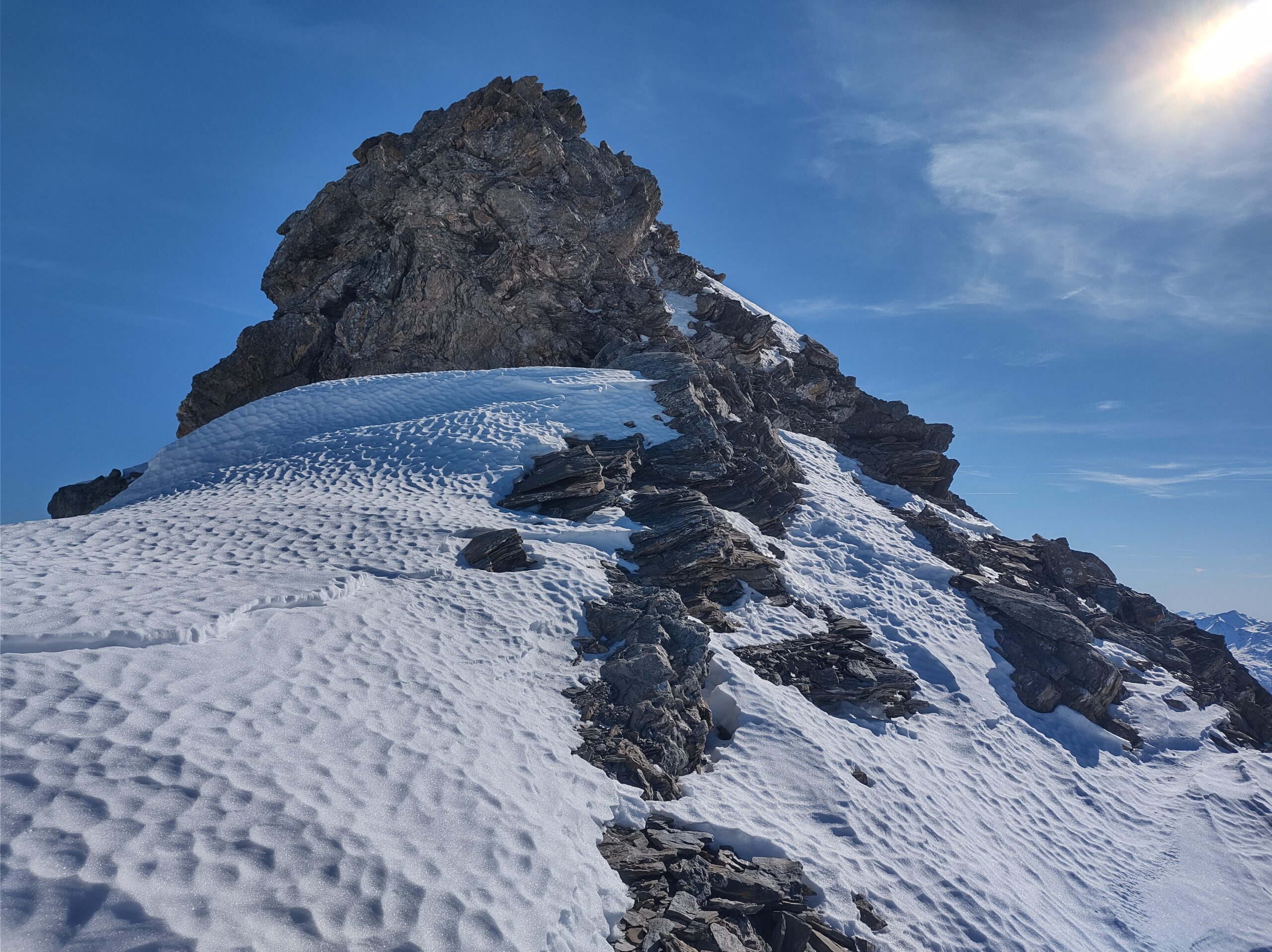 Condizioni ottime: canale completamente innevato, dopo il colle parete sud pulita fino alla cima.