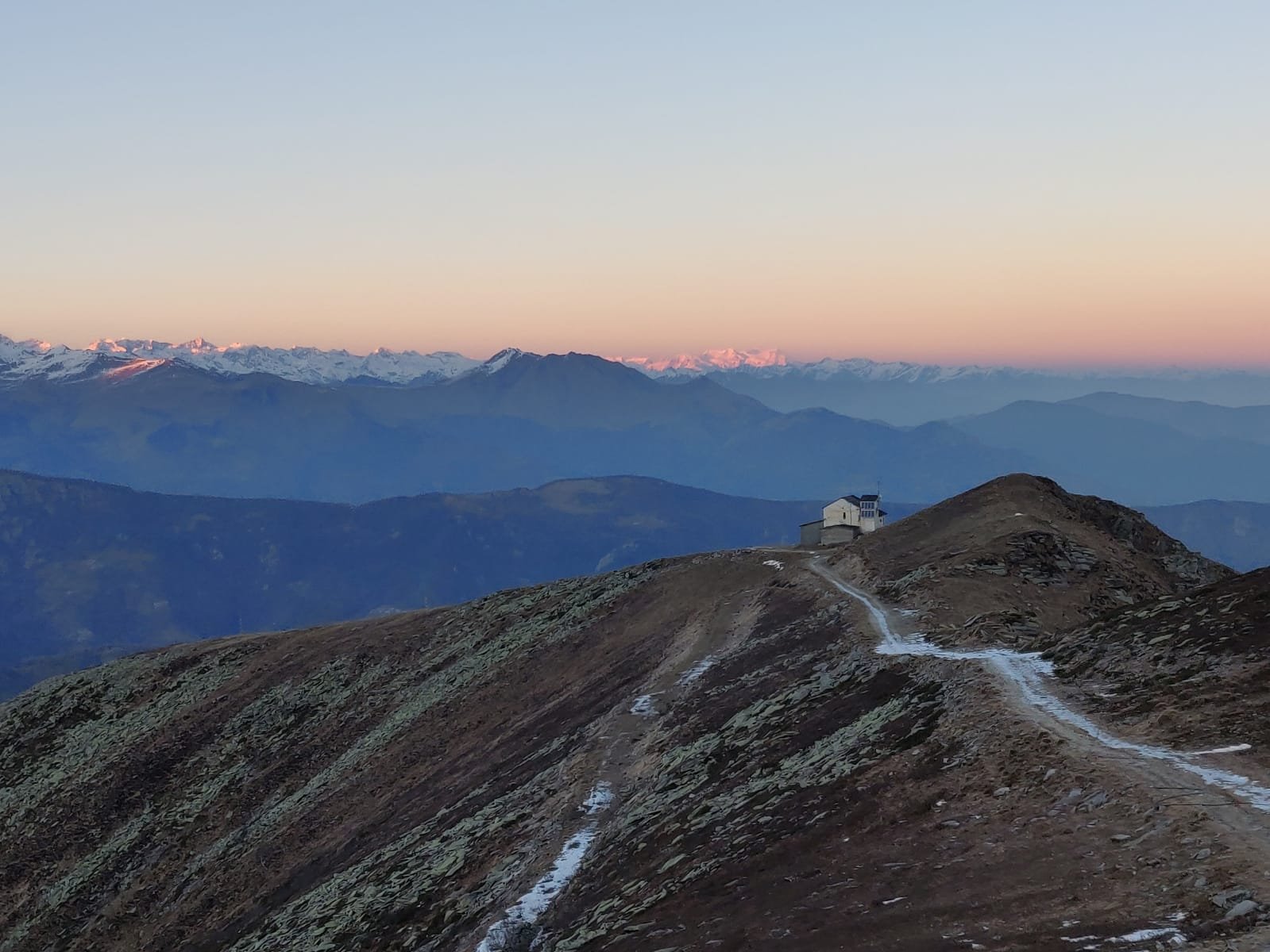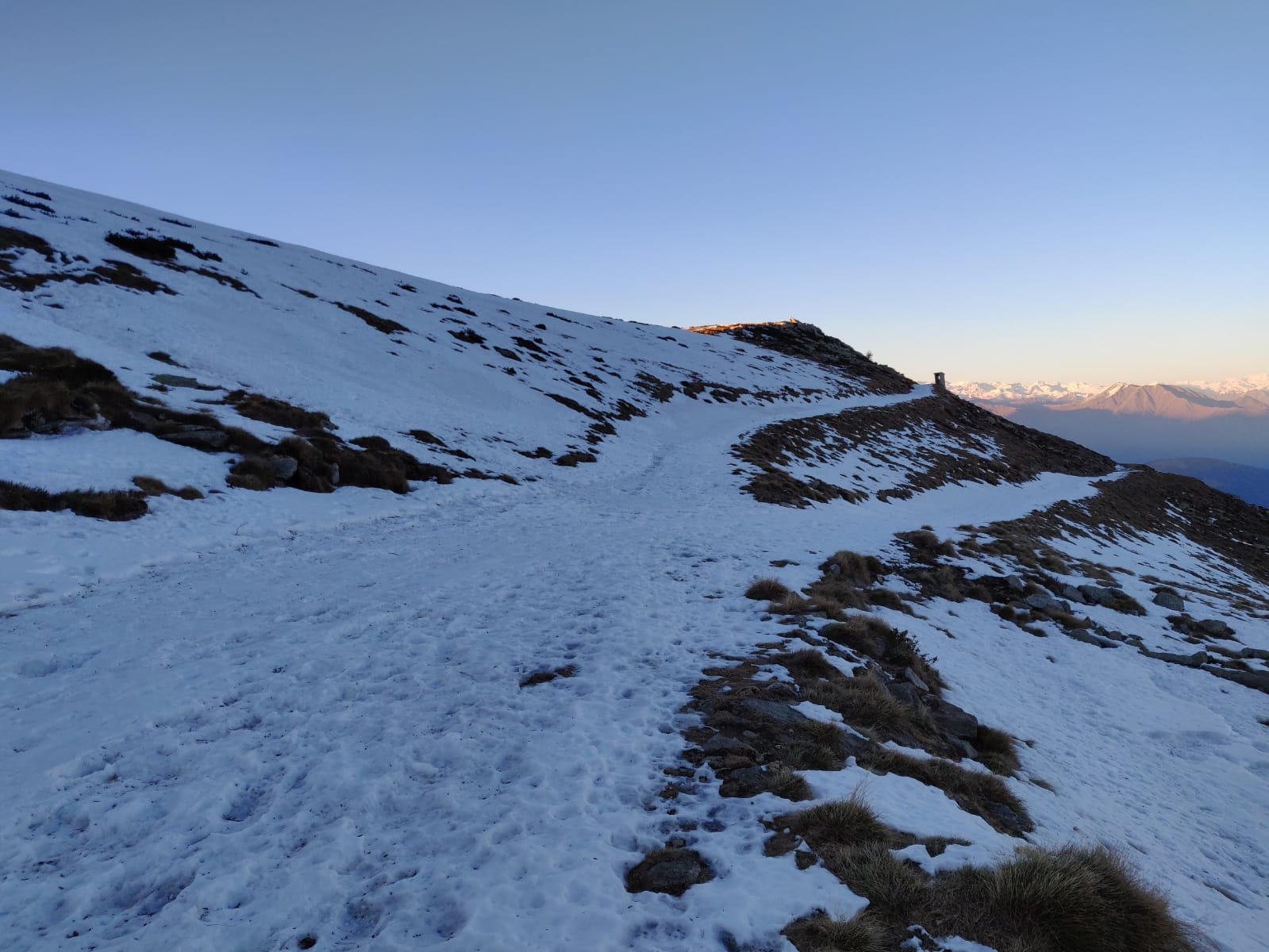 | chomolungma | il tratto di strada che porta al pendio finale | chomolungma | il pendio finale | chomolungma | uno sguardo indietro. Il massiccio del Rosa qui tinto... di rosa :) | chomolungma | le condizioni della prima parte della cresta dove ci siamo fermati | chomolungma | | chomolungma | al ritorno diamo uno guardo indietro