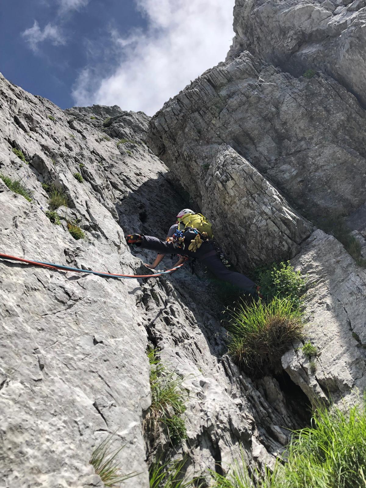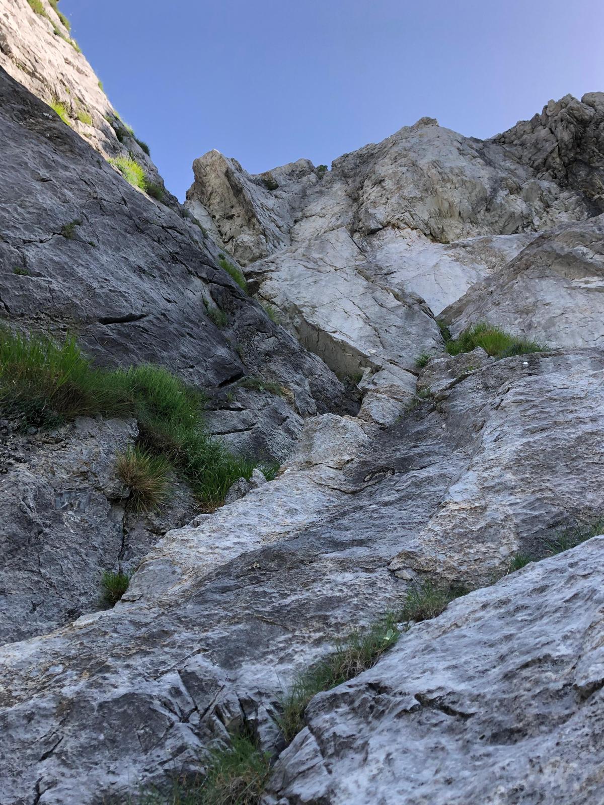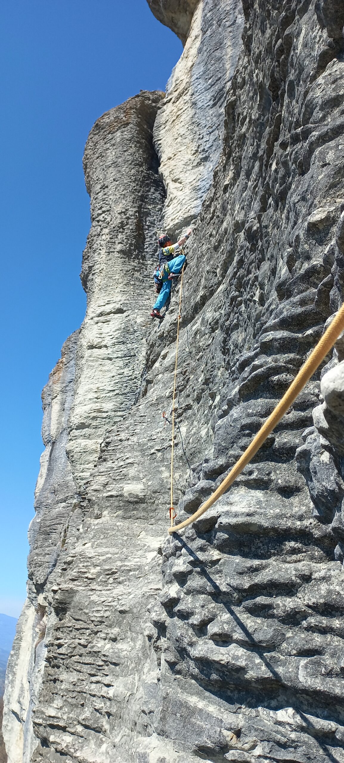 Linea stupenda, roccia super! Discesa comoda dal sentiero (seguire i bolli rossi).