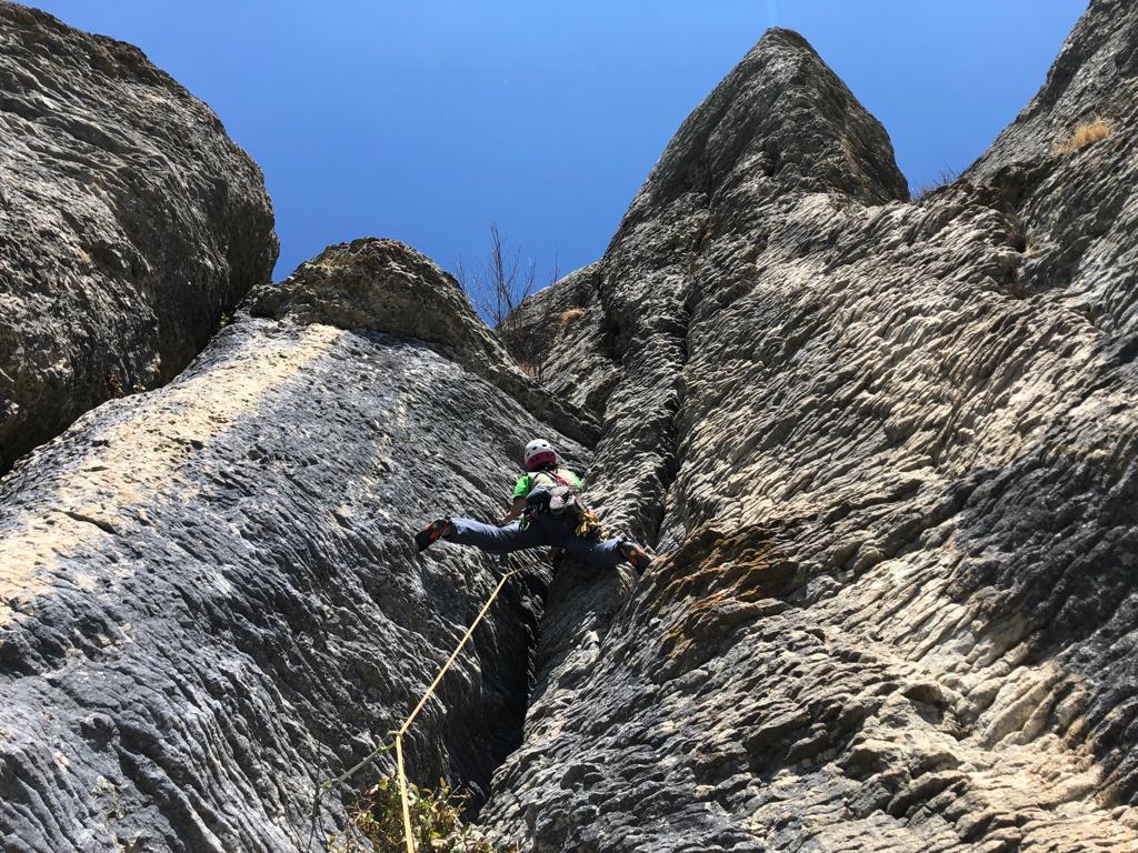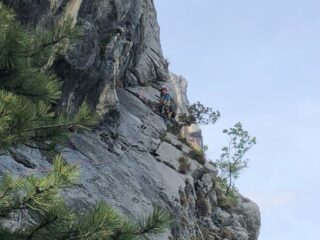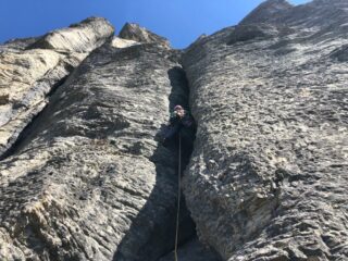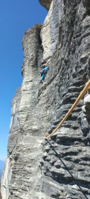 L2 psicologico. L3 secondo me il tiro più bello. L5 la via originale passa nel camino, noi abbiamo seguito la variante di placca a…