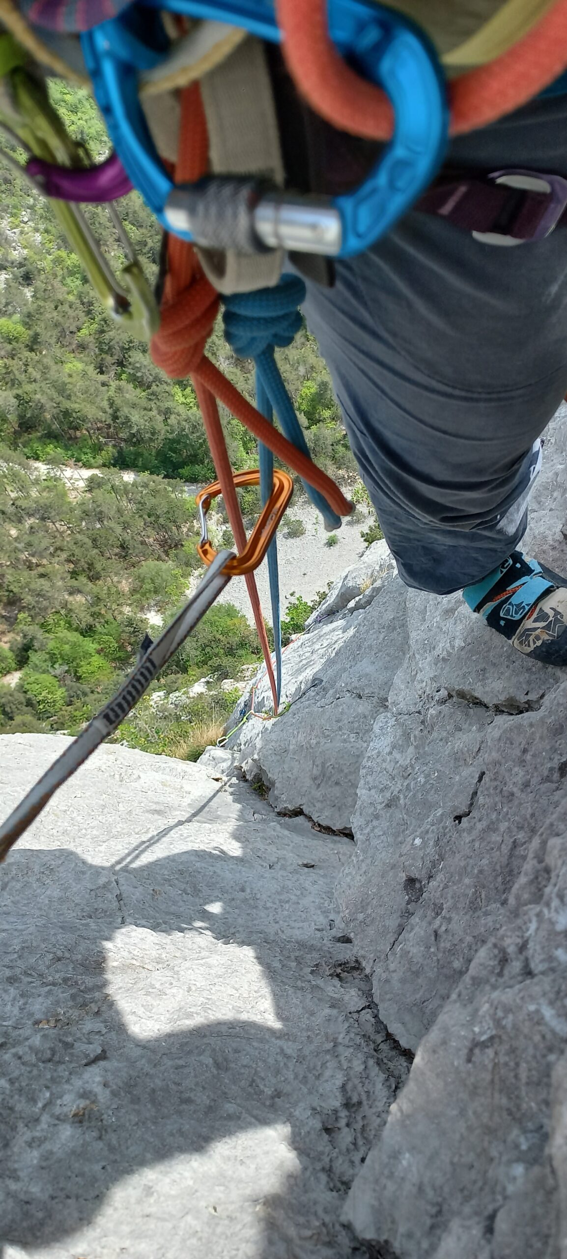 Bellissima linea su roccia un po' levigata soprattutto sul primo tiro. Pochissimi chiodi presenti ma facilmente proteggibile. Peccato sia corta!