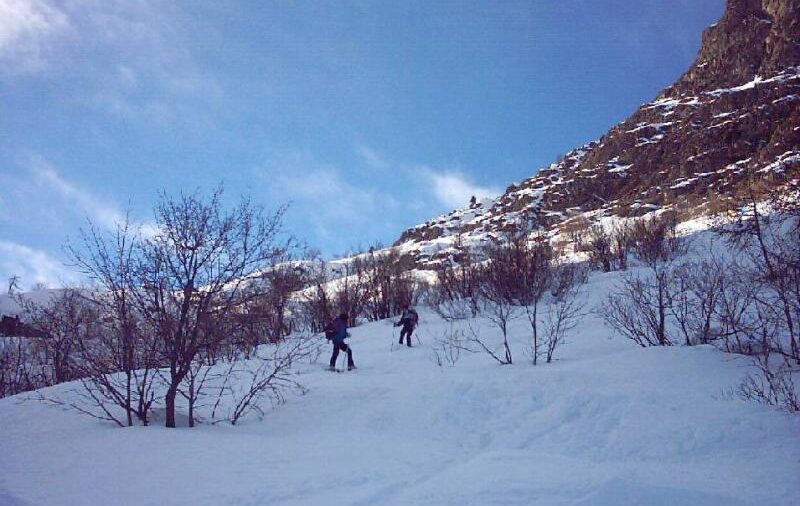 grande idea di danilo, prima 100 metri su neve beton, poi la neve diventa più facile, e la difficoltà sta nel trovare i passaggi giusti.
