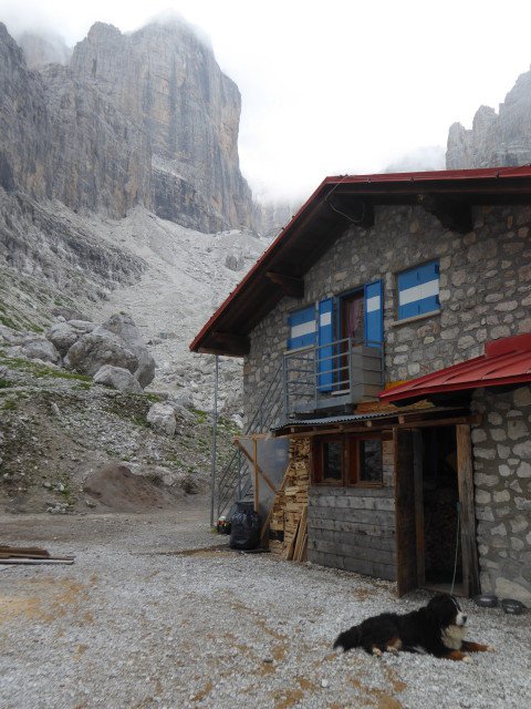 | climberigor | L'Agostini e Palto, a sinistra la cima d'Ambiez | climberigor | la via segue la colata nera di sinistra delle due parallele, a sx della punta | climberigor | il rifugio e i sassolini della frana | climberigor | il tiro chiave | climberigor | nebbia... | climberigor | altra cordata di lucchesi, su Vienna | climberigor | in discesa | climberigor | la seconda doppia, dalla forcella | climberigor | ambiente