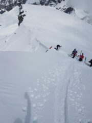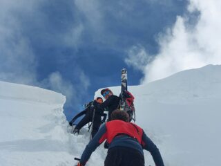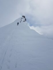 Si parte sci ai piedi da Cervinia.Meteo variabile in salita,nebbia in discesa.Rigelo leggero.Un grazie a chi ha aperto traccia e il varco sulla parte finale…