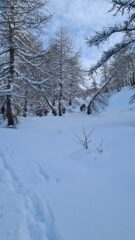 Per fortuna un bel gruppo ci ha preceduti e ha tracciato fino alla fine della strada(oggi pensare di tracciare su per il bosco voleva dire…