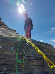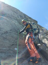 Tempi di avvicinamento rispettati.50 min al bivio e 25 circa all'attacco.Primi 2 tiri umidi per la pioggia della notte(santi spit ravvicinati),poi roccia asciutta e anche…