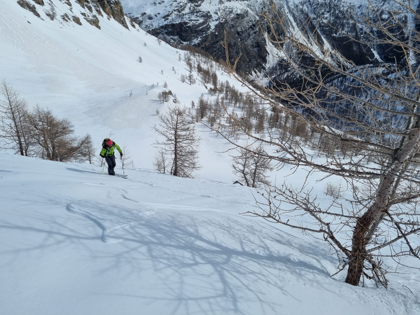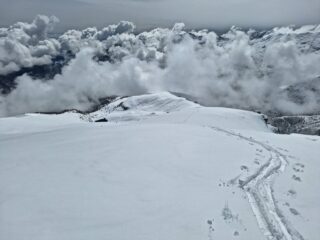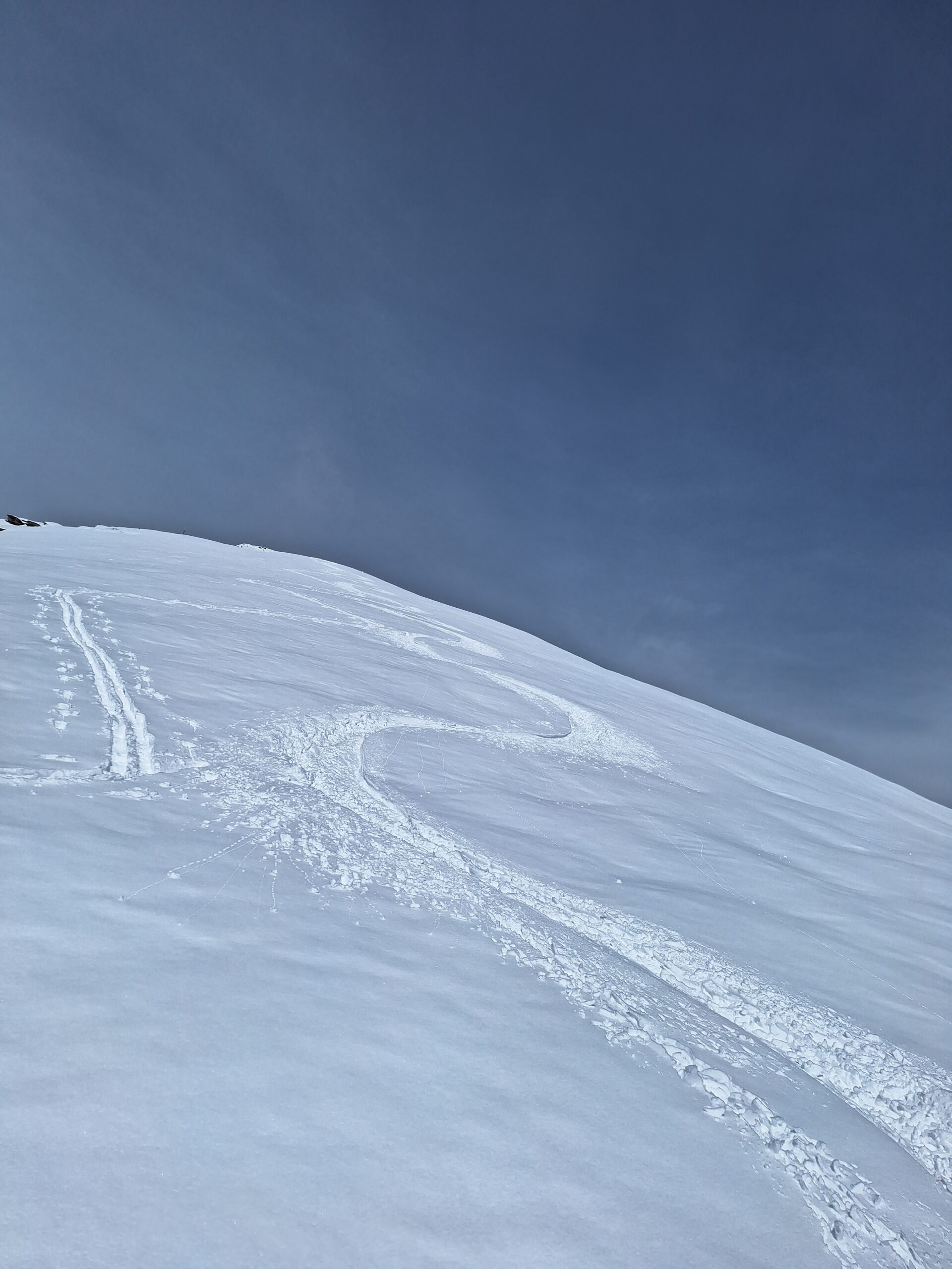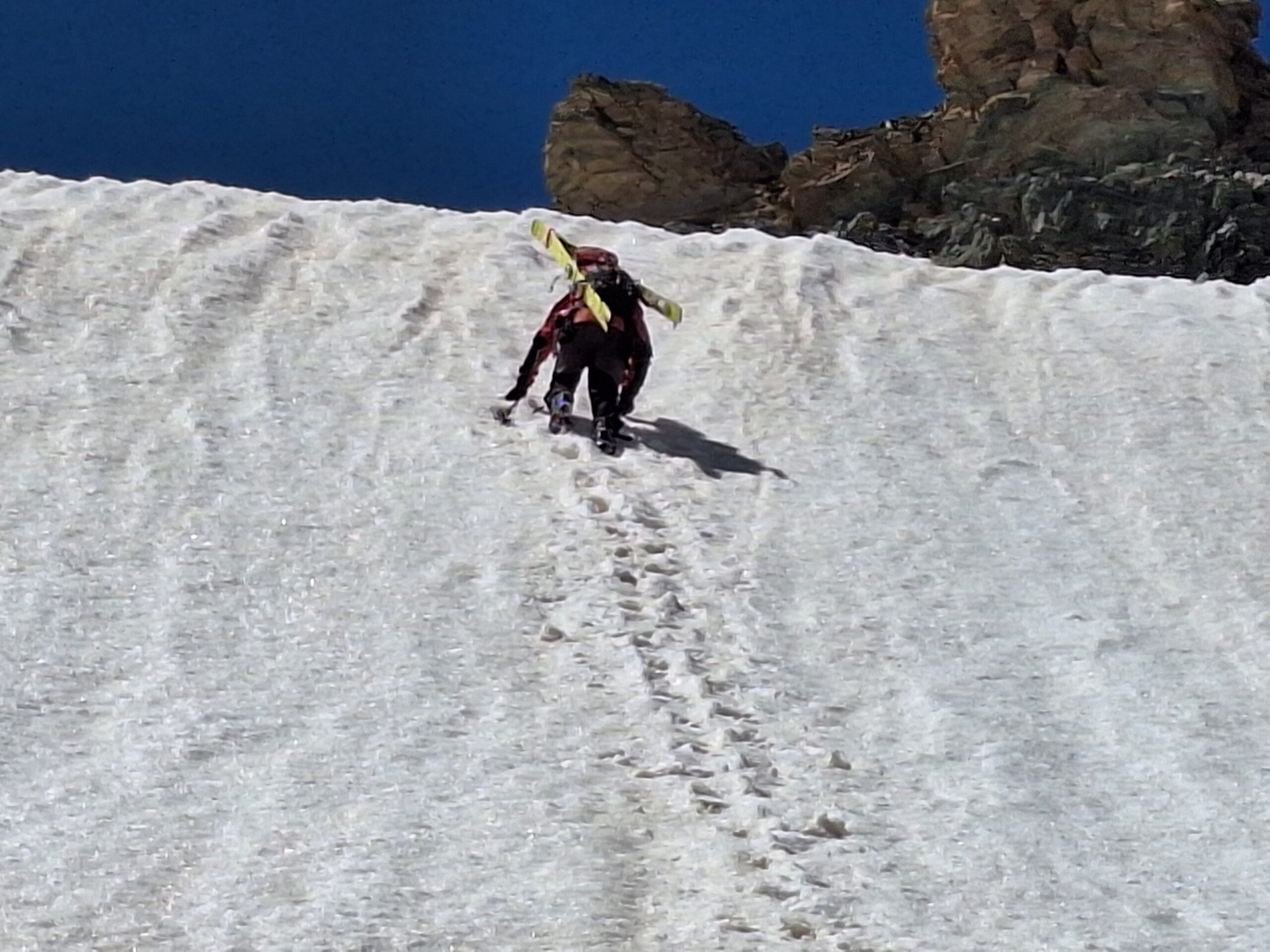 Rispetto alla prima relazione siamo scesi più tardi (11). Situazione già diversa.In alto la crosta ogni tanto sfondata e quindi bisognava stare molto leggeri,nei versanti a…