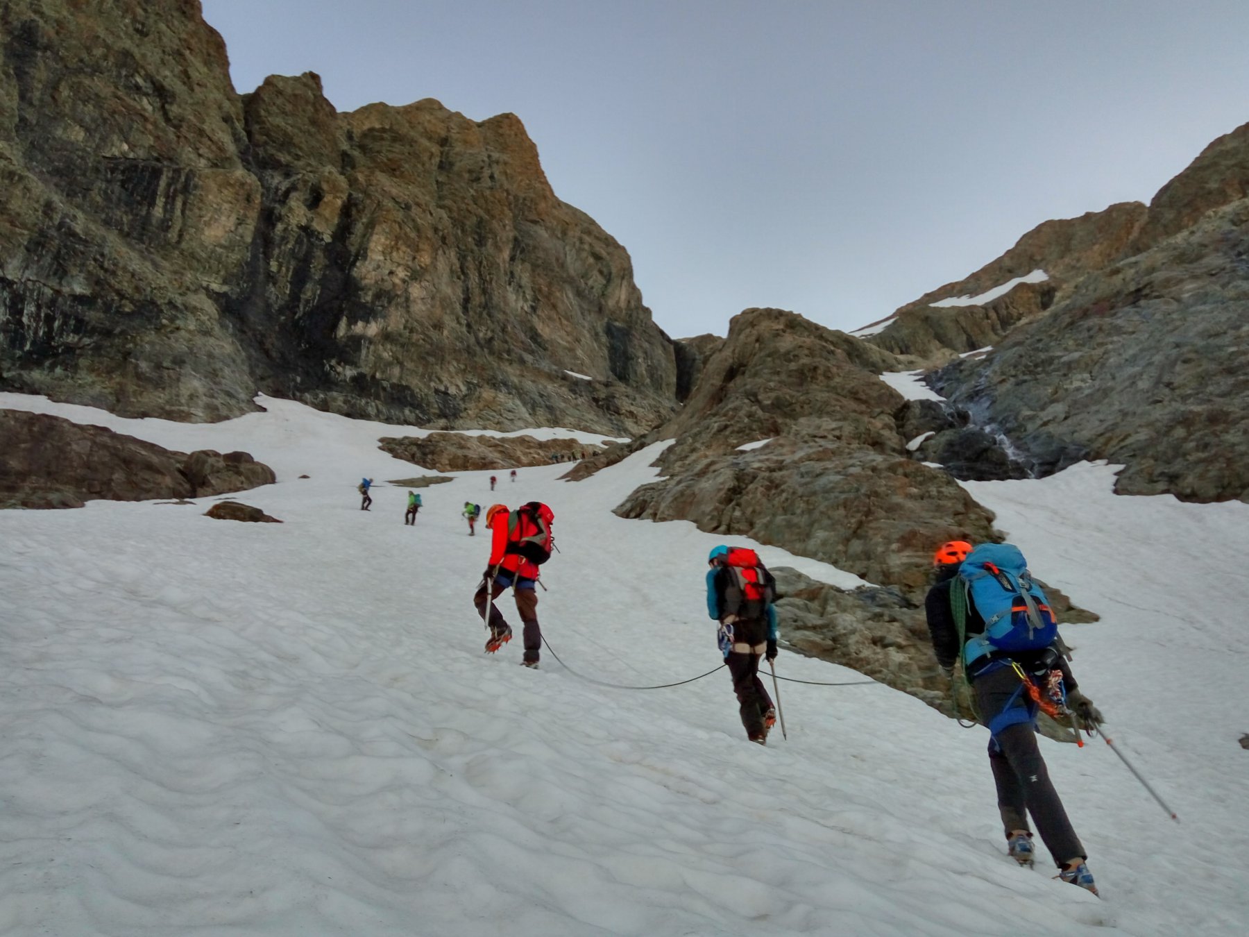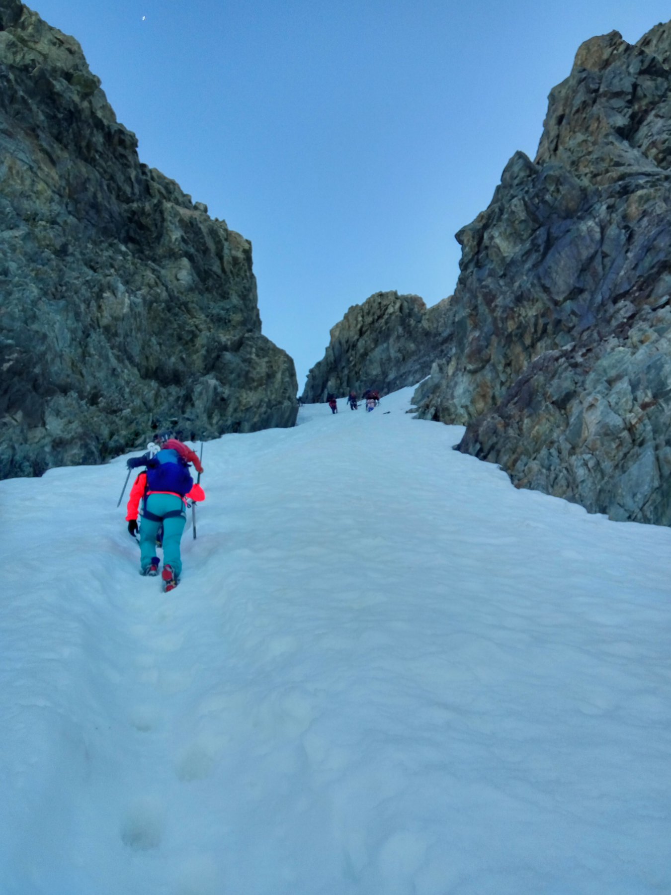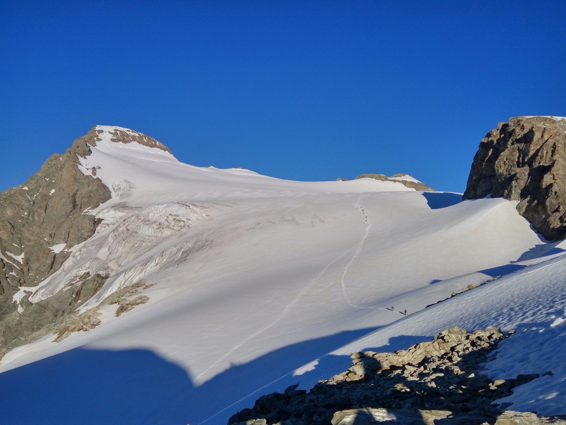 | curienri | canalino | curienri | ghiacciaio e cima, traccia evidente | curienri | primo nevaio prima del canalino | curienri | vista dalla cima: barra e Ailefroide in primo piano