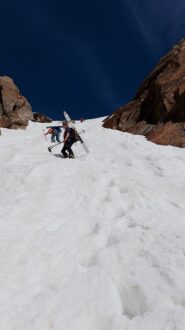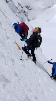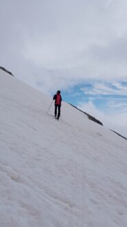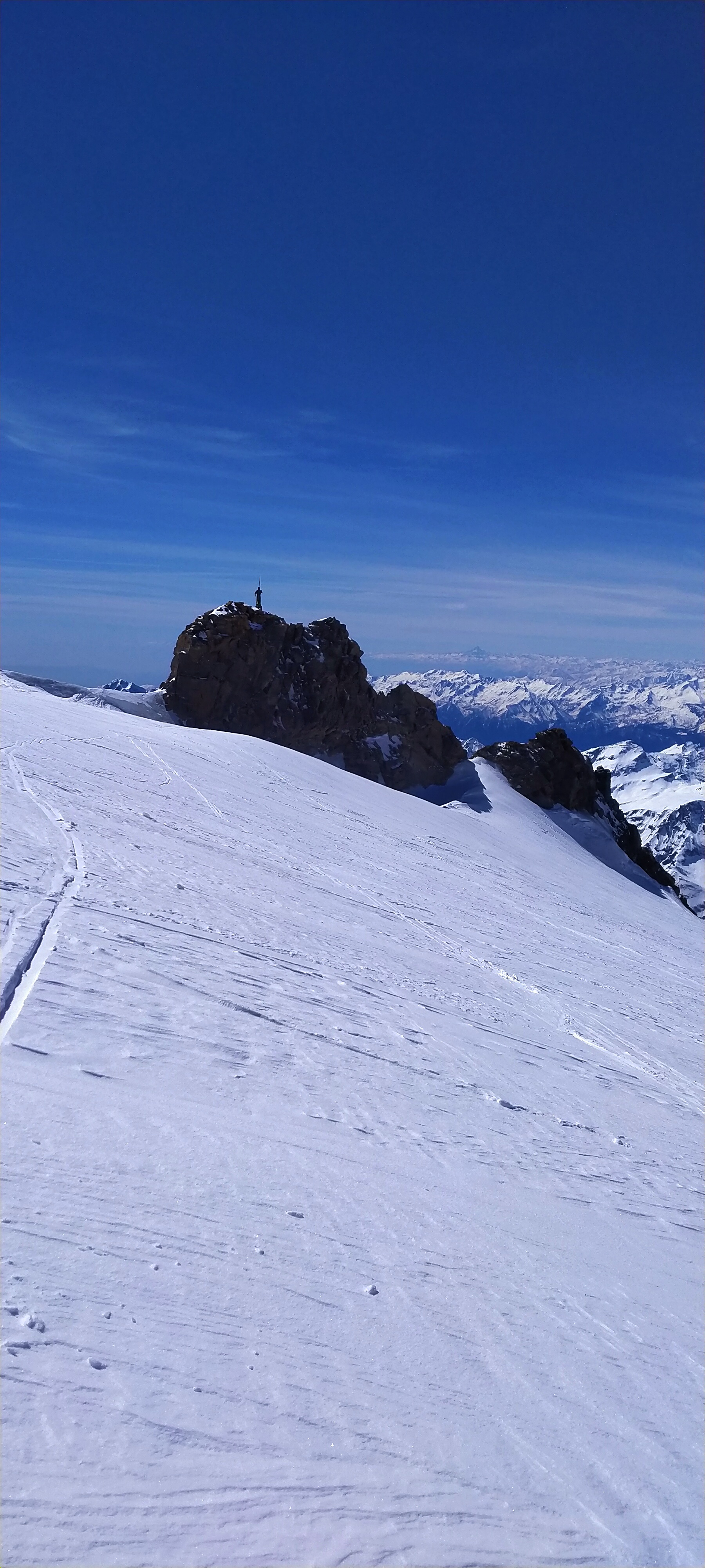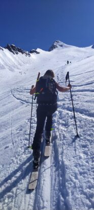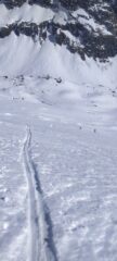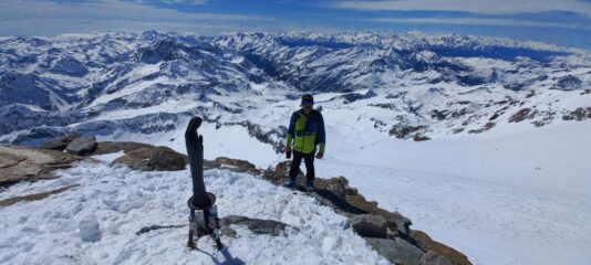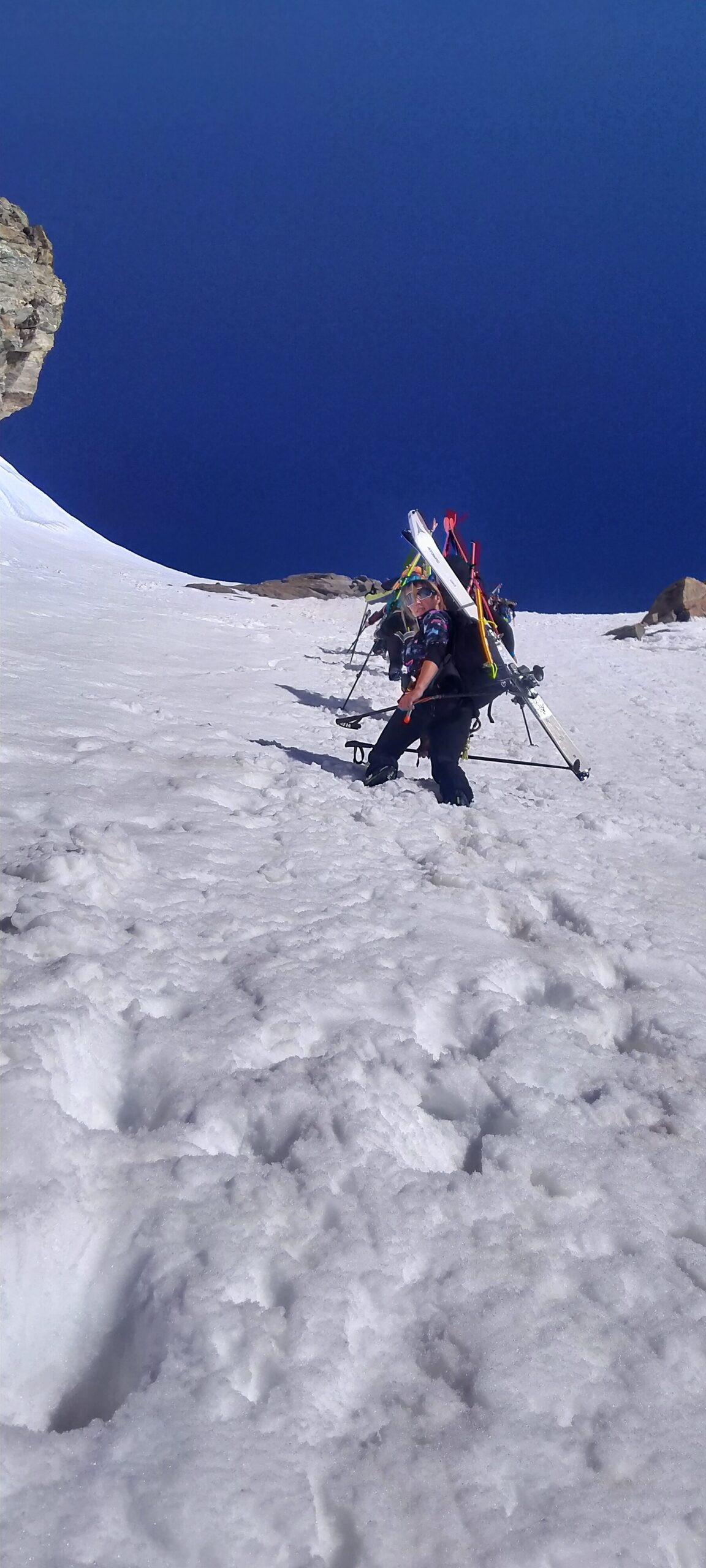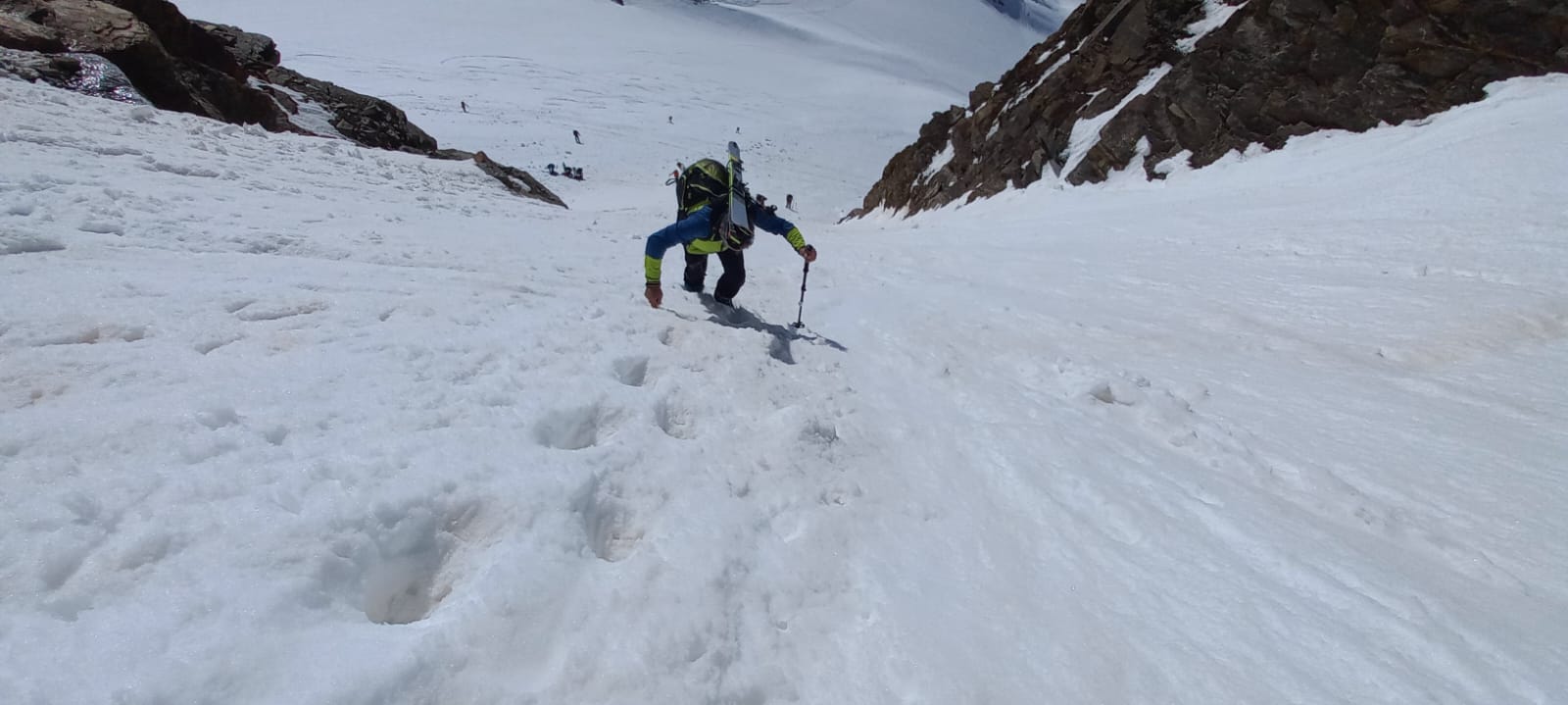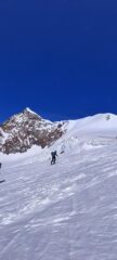 Partiti da Alagna - Indren , ultimo we con impianti aperti. Saliamo bene su neve trasformata che non richiederà mai uso di rampanti. Decidiamo di risalire…