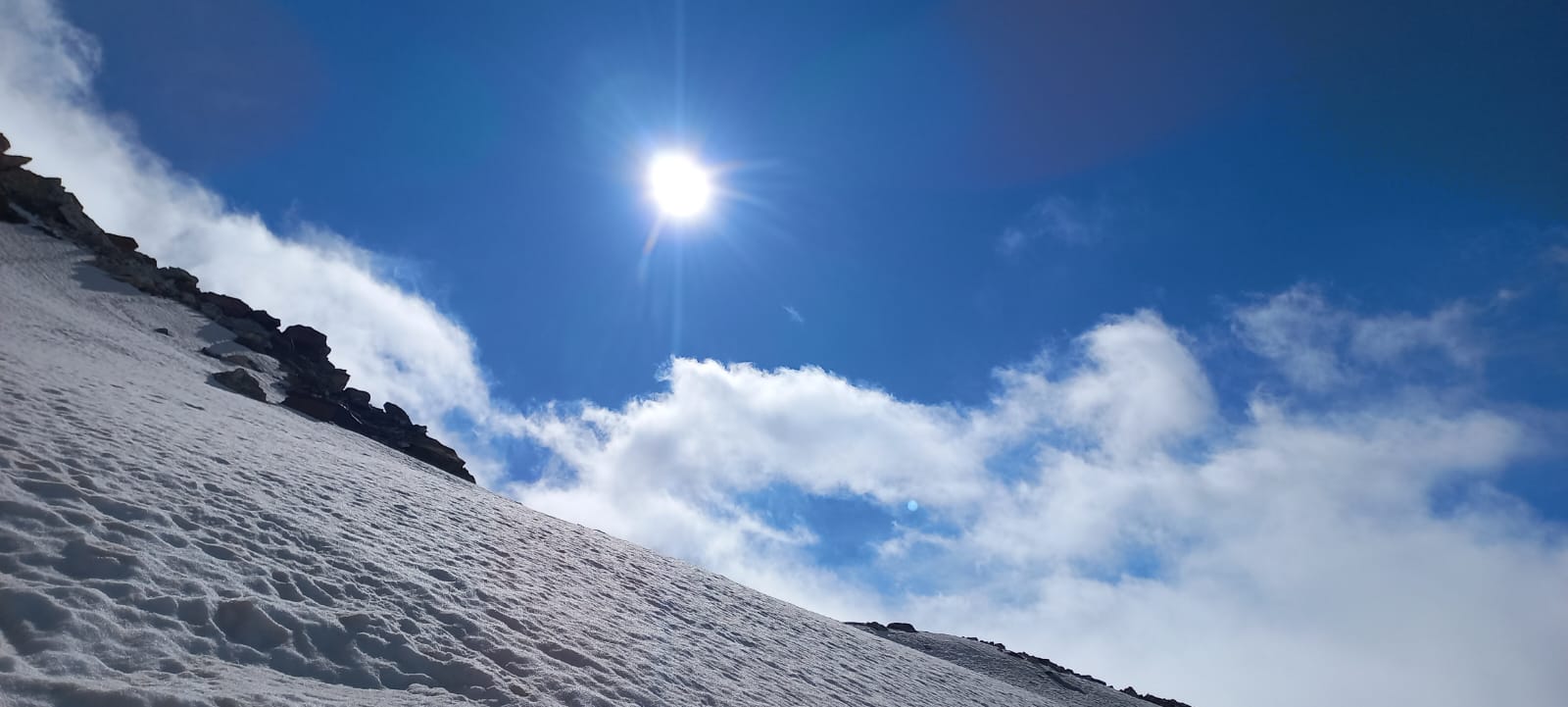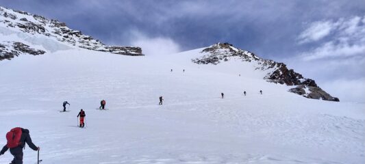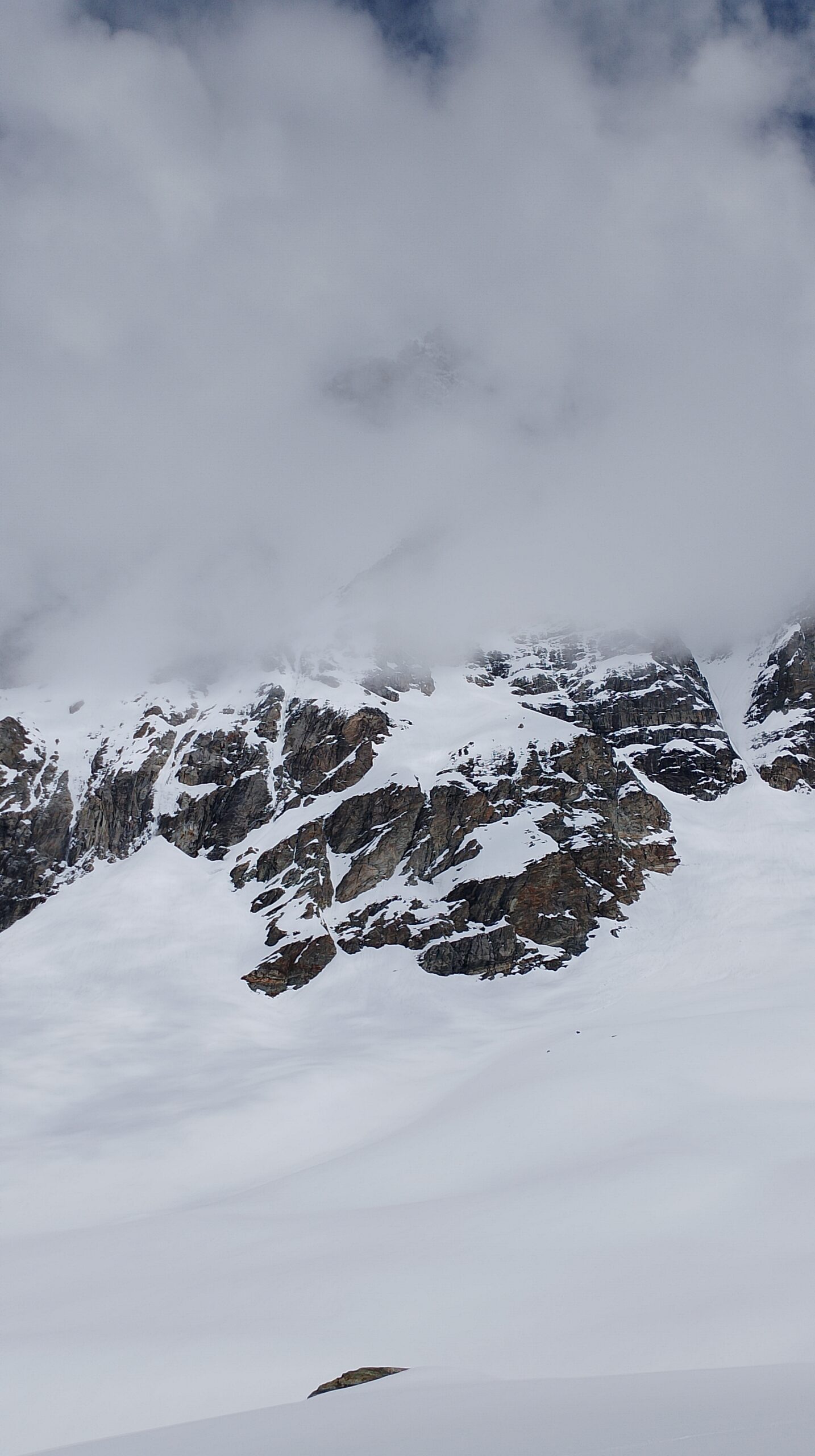 Partiti da Indren con un bel cielo azzurro solo ,qua e la, un po' velato e poche, in apparenza innocenti ,nuvolette basse in fondovalle. I…