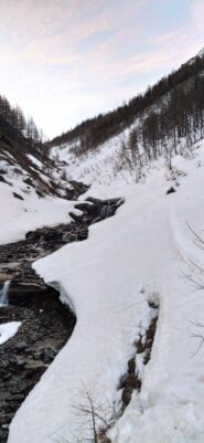 Si parte sci ai piedi dal ponte d'Almiane, con 7 gradi alle 6.30 e assenza di rigelo non sono necessari i coltelli nella parte bassa,…