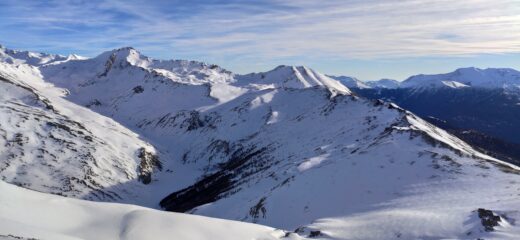 Jafferau (Monte) da Bardonecchia per il Forte Foens, discese: Valfredda, Bacini, Foens
