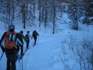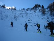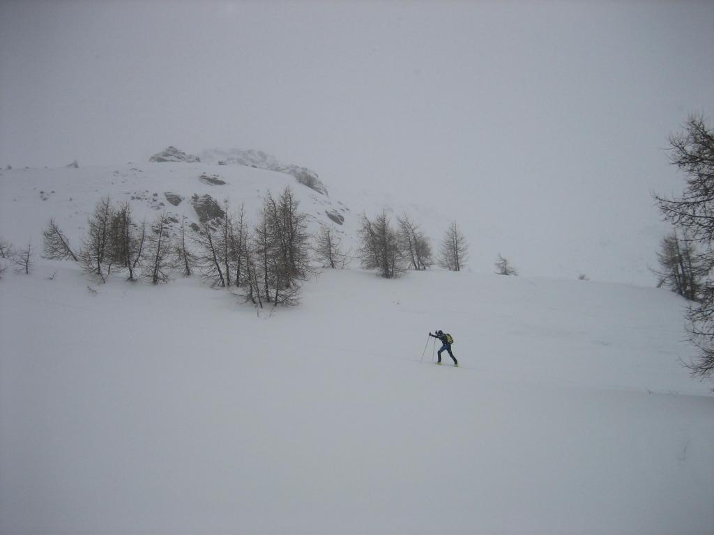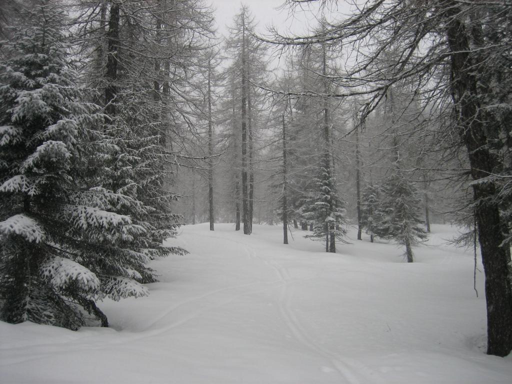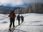Partenza dalla macchina con aria gelida, per fortuna poco dopo aver lasciato le piste si stava meglio, più su la situazione però cambiava di nuovo…