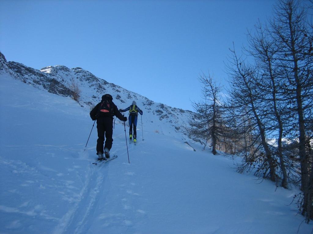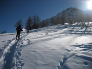 Partiti dalla piana di san Nicolao, dopo la strada è bloccata. Dopo la prima parte ancora in ombra il sole scaldava per bene. Peccato per…