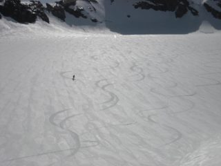 saliti sulle piste, siamo arrivati fino alle roccette dopo la madonnina, all'incirca dove dovrebbe passare la gara di domenica prossima.. In discesa ci siamo tenuti…