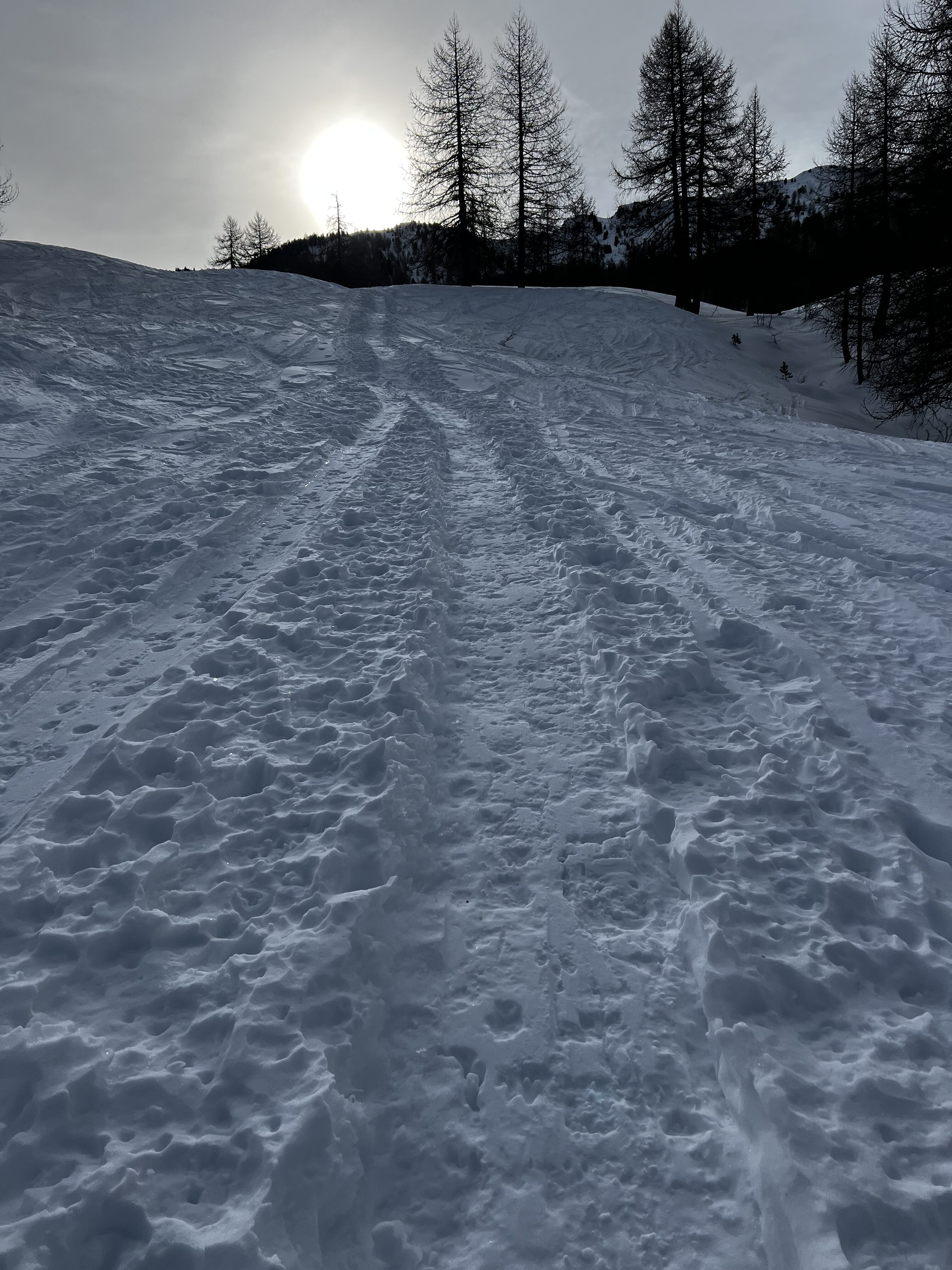 Partiti da Thures verso le 8.30 con 2 gradi. Gli sci si possono mettere 100 m dopo. La traccia era presente fino al bivio per…