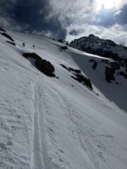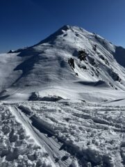 Partenza da Plateau Rosa poco dopo le 9. Tanta gente diretta in gran parte verso il Breithorn. Nell’ultimo pendio abbiamo messo i ramponi quasi subito,…