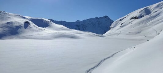 Bella gita assolata, nessuno sul percorso, Quota neve da 1700m, sufficiente per la gita, parte alta con farina intonsa mentre nel bosco sciabile ma bosco fitto. Parte…