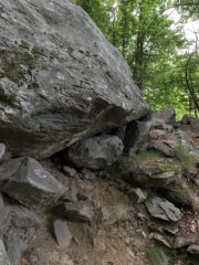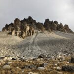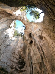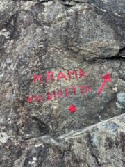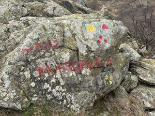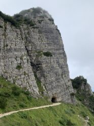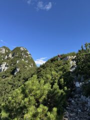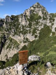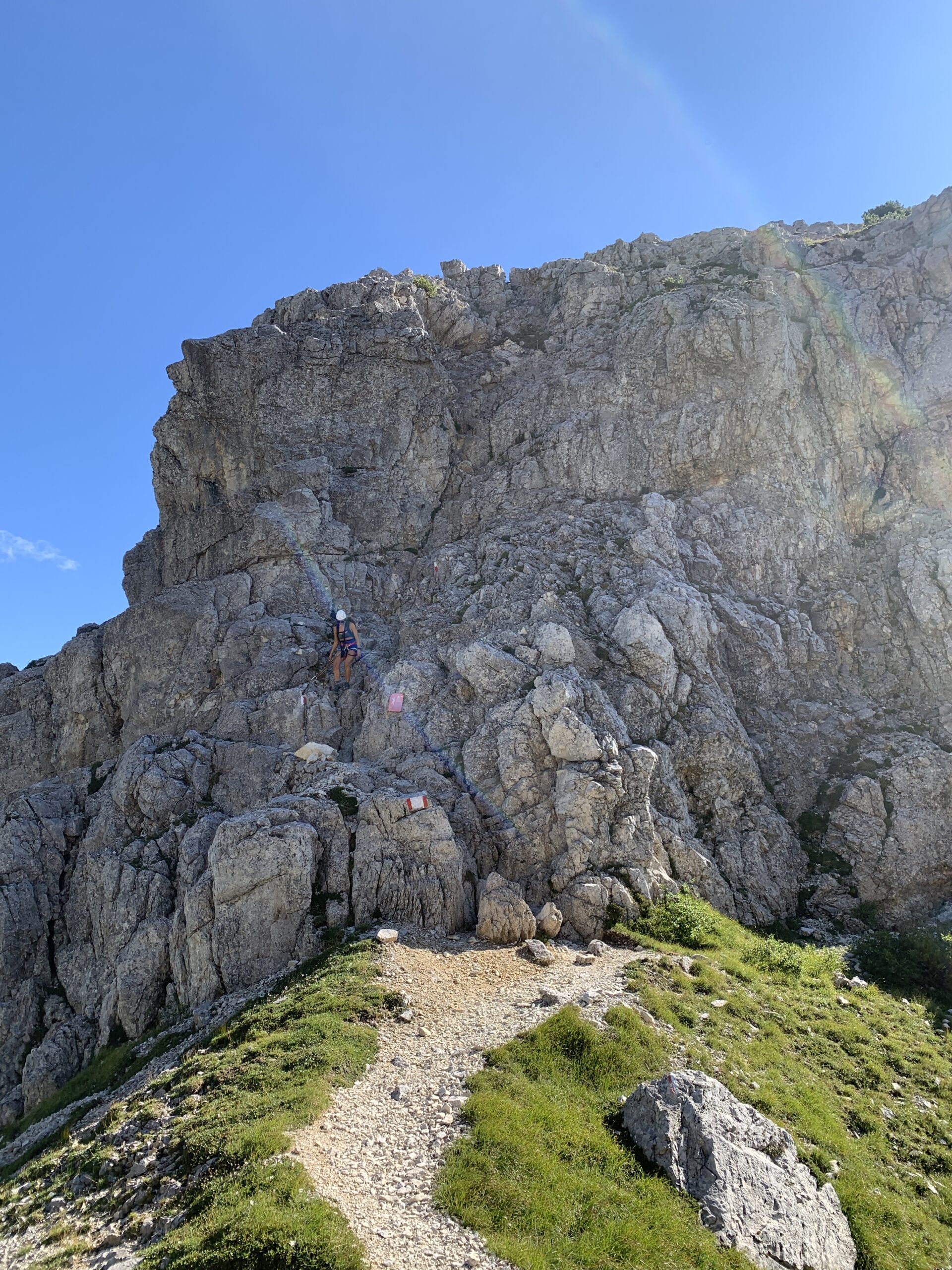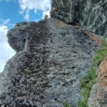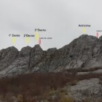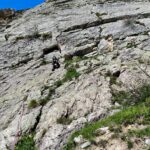 | dadoruggeri | Attacco della via | dadoruggeri | Uscita di L4 | dadoruggeri | Trasferimento da S4 a L5, qui si abbandona il sentiero e si risale il pendio puntando gli ometti e una evidente “P” verniciata di rosso | dadoruggeri | Calata da S7