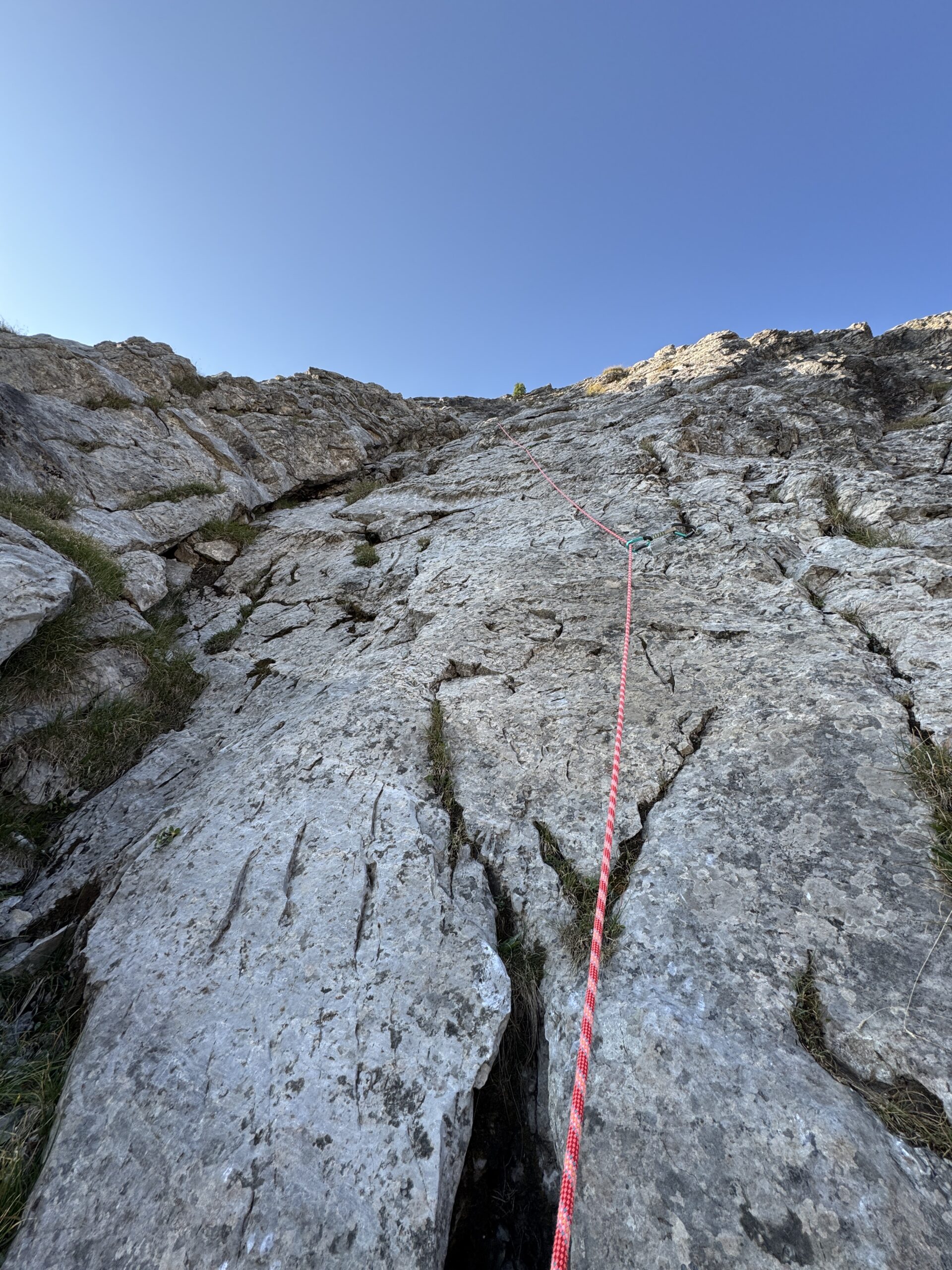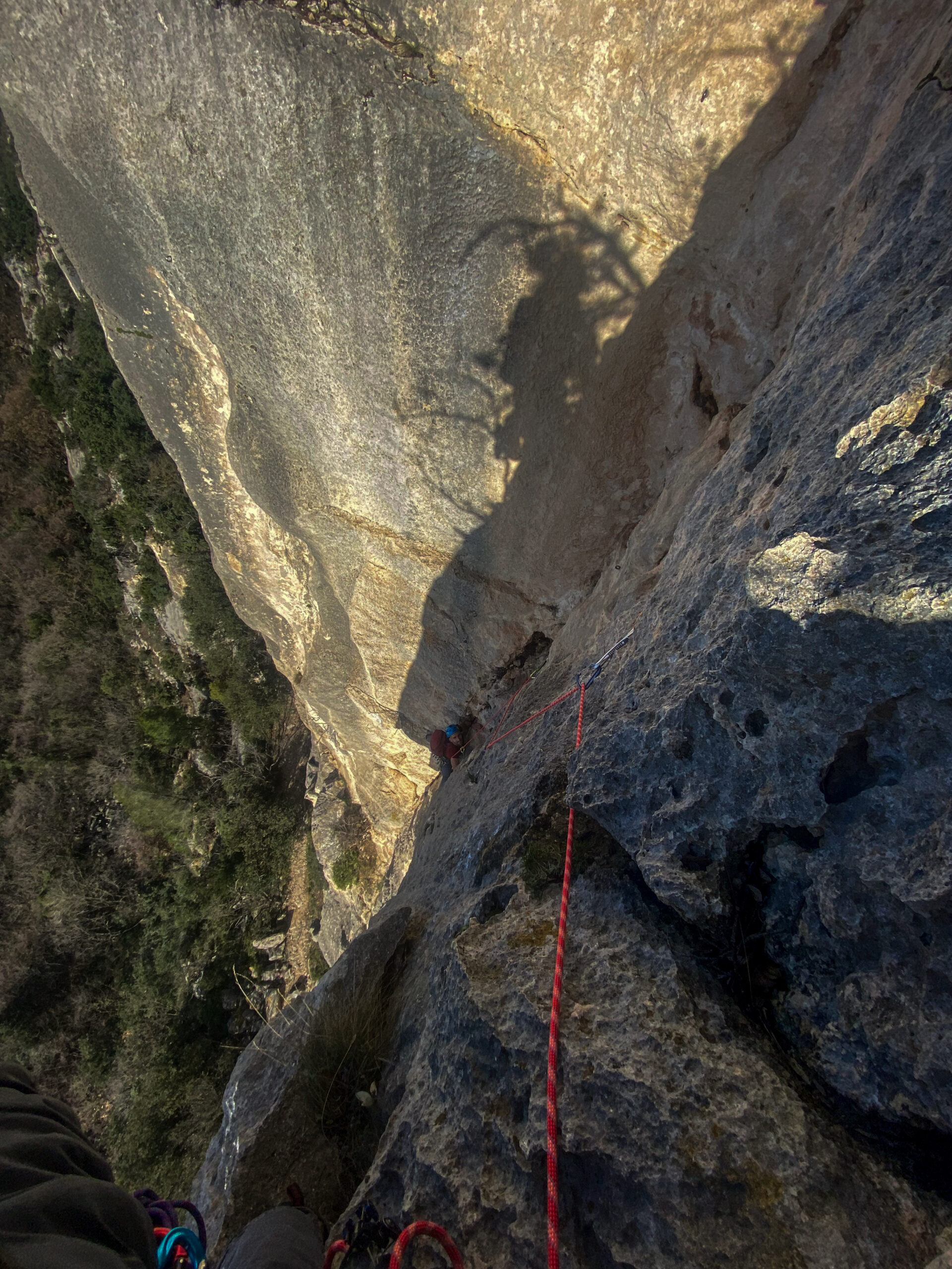 | dadoruggeri | Attacco della via | dadoruggeri | Angelo nel diedro di L2 | dadoruggeri | Panoramica della via con il drone, molto evidente il magnifico diedro di L2 | dadoruggeri | Ungulato su L2 | dadoruggeri | L1