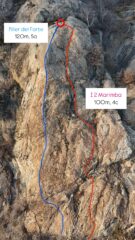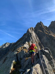 | dadoruggeri | | dadoruggeri | Ultimi metri di disarrampicata | dadoruggeri | Placche Rey | dadoruggeri | Ultimo tratto di discesa dall'anticima, il più pericoloso in quanto tutto in disarrampicata. | dadoruggeri | Rosso: accesso alla base del torrione sommitale.