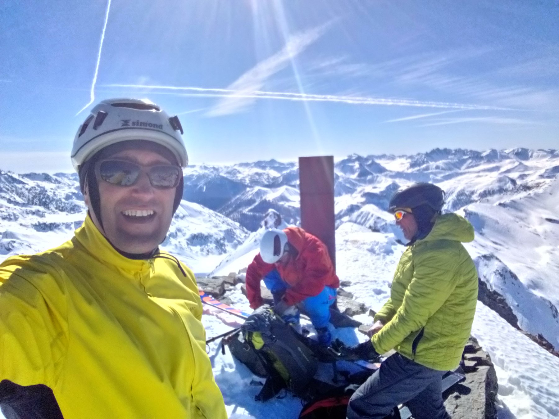 Meteo stupendo. Rigelo notturno. Partiti verso ore 08.30 dal Rifugio Talarico sci in spalle per circa 15 minuti, poi neve continua fino in cima. Rampant…