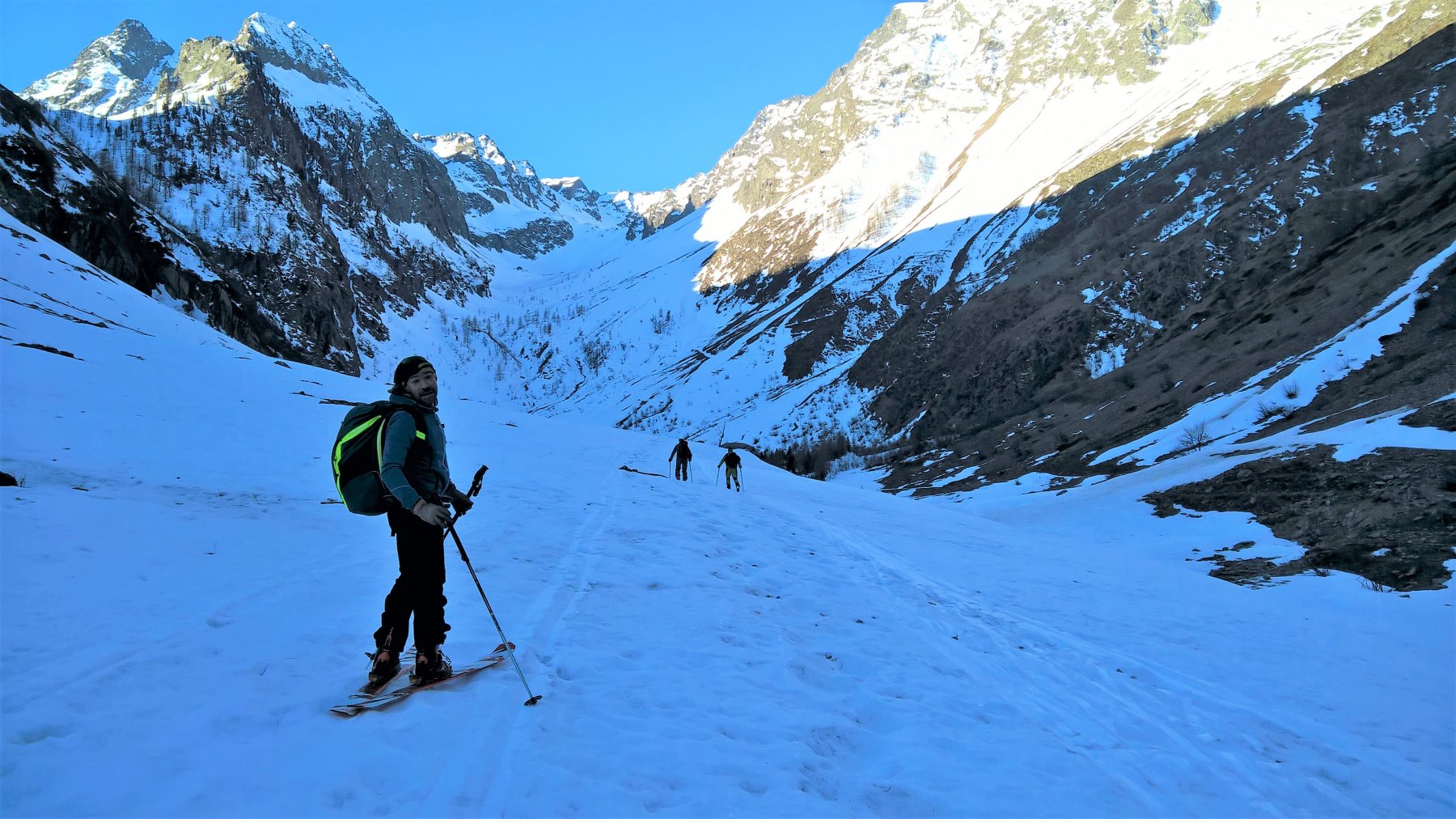 Poca neve alla partenza... Ma ancora utile per arrivare alla base del vallone... Poi neve man mano sempre più sufficiente... Nel tratto finale si arriva…