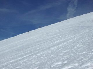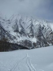 Giornata nuvolosa e poi con un timido sole velato Neve tutto sommato migliore di quanto fossero le mie aspettative in salita. Parte alta con crosta portante…