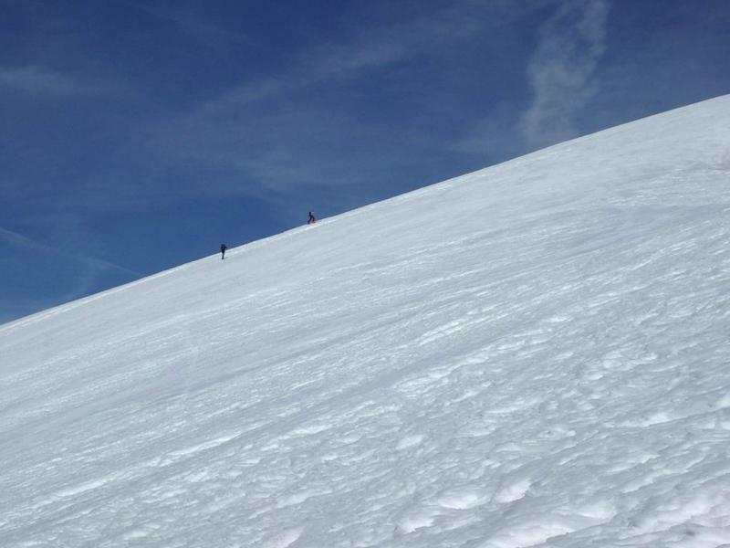 Bellissima giornata mite e senza vento. Neve primaverile trasformata dalla cima alle auto. In alcuni tratti il fondo è parecchio lavorato dal vento, appena si…