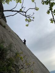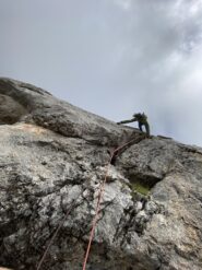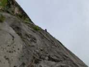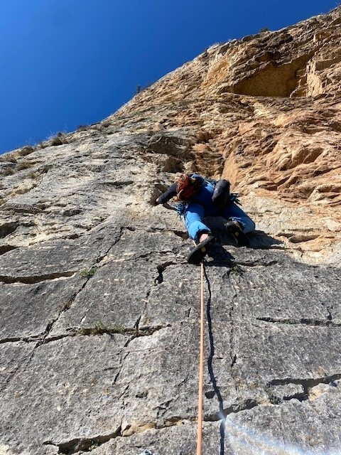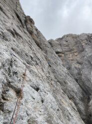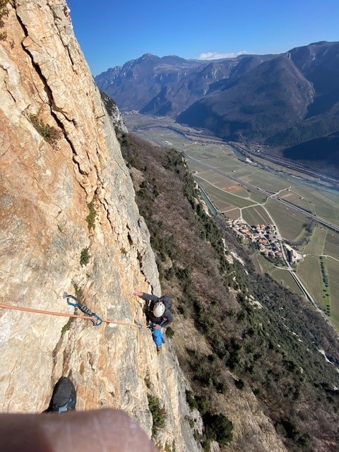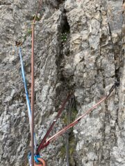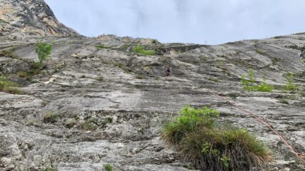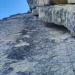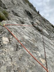divertente via dal carattere molto plasir vista la fitta spittatura sui passaggi più difficili. roccia sempre bella , alcuni ritocchi con cemento un po orrendi…