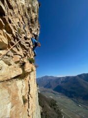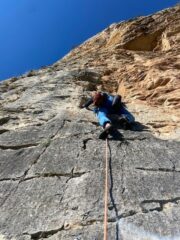 Bellissima via che prende il sole verso le 9.45 nei mesi invernali, di comodo accesso e rientro! Roccia compatta e tecnica dal secondo tiro in…