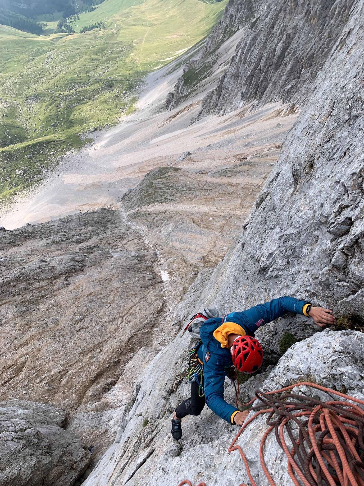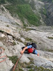 imponente parete con oceano di placche. via tecnicamente facile per chi governa un solido VI. spesso e volentieri si fanno runout anche di 15/20 metri o…